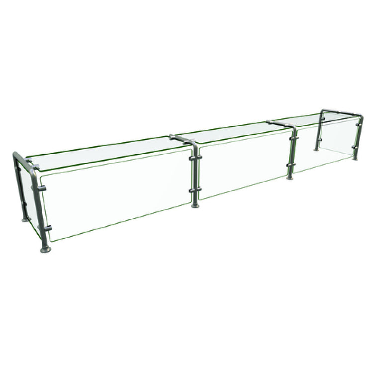 The Hatco EP12-10818 Flav-R-Shield® EP12 Food Shield is a full-service pass-over unit engineered for professional settings that require reliable food protection and presentation. Featuring a meticulously crafted 1/4" thick heat-tempered glass construction, this food shield ensures durability and safety, making it ideal for high-traffic environments. The glass design incorporates 3/4" radius corners and polished edges, adding an element of elegance and safety to the unit. Measuring 108"W x 18"D x 18"H, it offers ample space across its three bays, allowing for versatile use in various food service settings. A glass top shelf, in conjunction with front and side panels, enhances visibility while maintaining hygienic standards. Supporting the structure are 1" OD brushed 304 stainless steel posts, providing a sturdy and corrosion-resistant framework. As an NSF component, the Hatco EP12-10818 meets stringent standards for public health protection, ensuring its suitability for food service applications. Proudly made in the USA, this food shield is a testament to quality and innovation, catering to the needs of restaurants, buffets, and catering services that prioritize both functionality and aesthetic appeal in their service equipment.