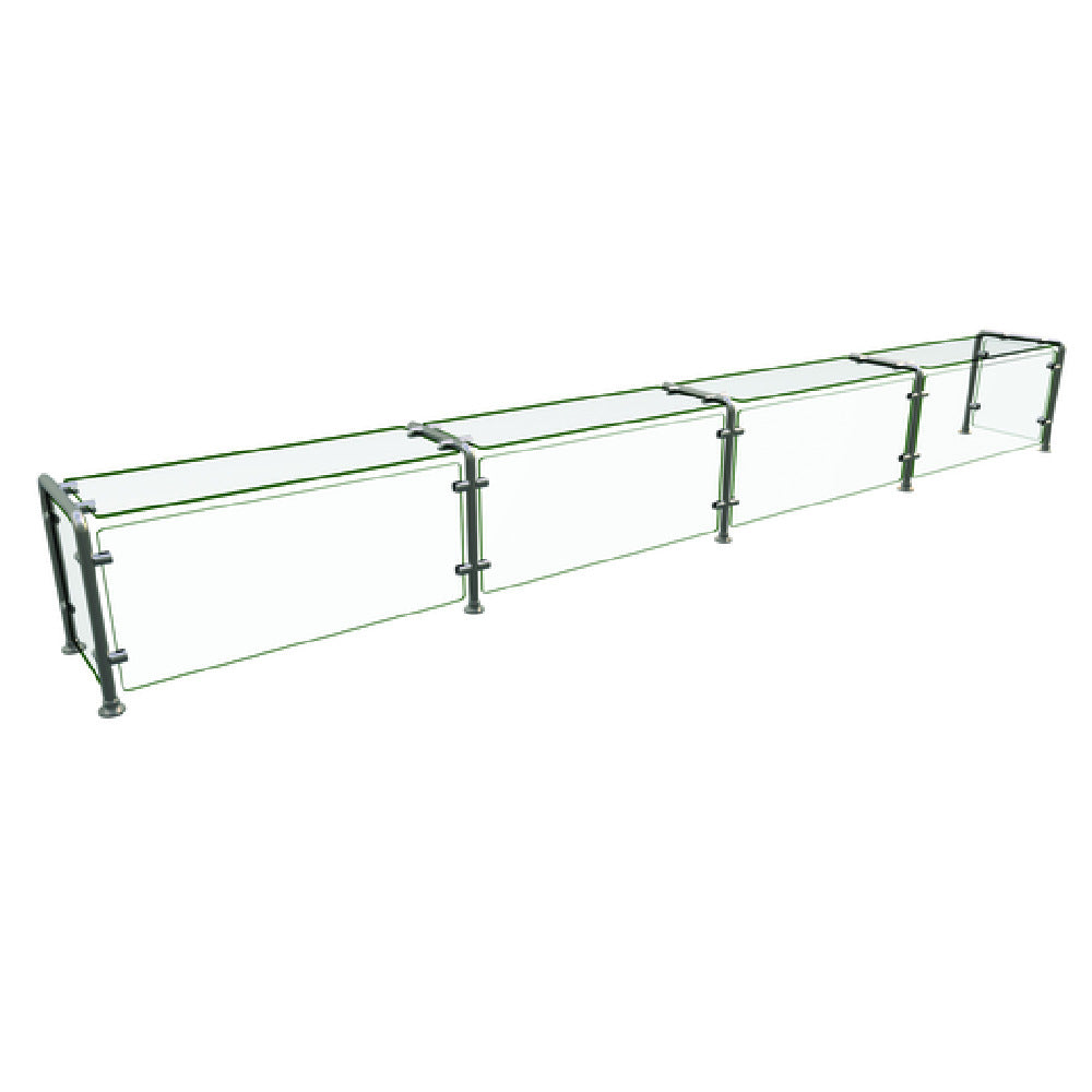 The Hatco EP12-13215 Flav-R-Shield® EP12 Food Shield is an expertly crafted full-service pass-over unit designed for optimal food presentation and protection. This model boasts precise dimensions of 132 inches in width, 15 inches in depth, and 18 inches in height. It is constructed with 1/4-inch thick heat-tempered glass throughout, ensuring both durability and safety in high-traffic food service environments. The glass features 3/4-inch radius corners and polished edges, enhancing both safety and aesthetic appeal. The inclusion of a glass top shelf, along with front and side panels, offers a comprehensive view of the displayed food, supported by robust back posts. The integrity of the structure is further reinforced by 1-inch OD brushed 304 stainless steel posts, providing both strength and a sleek, modern look. This food shield is NSF component certified, aligning with rigorous public health and safety standards, ensuring it is suitable for use in professional food service settings. Proudly made in the USA, the Hatco EP12-13215 Flav-R-Shield® EP12 Food Shield stands out as a versatile choice for restaurants, cafeterias, and catering events, offering premium food protection and an elegant display solution for diverse culinary presentations.
