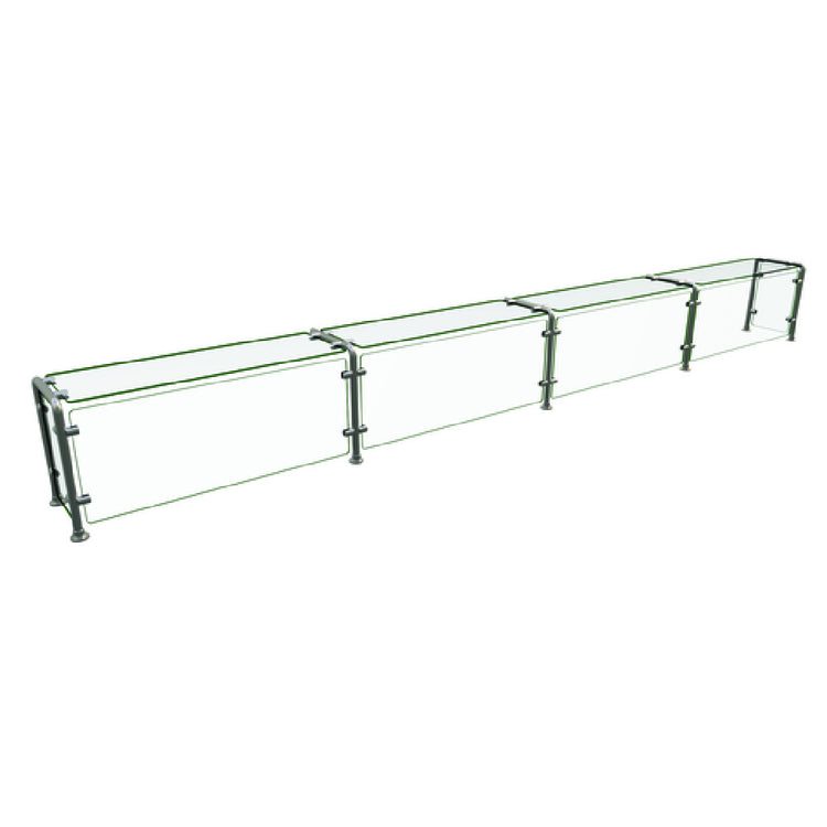 The Hatco EP12-14412 Flav-R-Shield® EP12 Food Shield is a meticulously engineered product designed for full-service pass-over applications, featuring a substantial 144-inch width, 12-inch depth, and 18-inch height configuration across four bays. Constructed entirely from 1/4-inch thick heat-tempered glass, it provides durability and safety with its polished edges and 3/4-inch radius corners, ensuring a sleek and professional appearance. The glass top shelf is complemented by front and side panels, supported by robust back posts. Additionally, the food shield incorporates 1-inch OD brushed 304 stainless steel posts, adding to its structural integrity. Certified as an NSF component, this product aligns with rigorous public health and safety standards, making it ideal for a variety of professional food service environments. The Hatco EP12-14412 is proudly manufactured in the USA, reflecting a commitment to quality craftsmanship. This food shield is particularly advantageous for different market segments, including restaurants, catering services, and food retail establishments, offering a reliable solution for maintaining food safety and presentation standards. Its versatile design caters to diverse operational needs, making it a highly sought-after choice within the industry for those prioritizing both form and function.