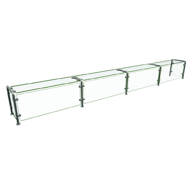 The Hatco EP12-14415 Flav-R-Shield® EP12 Food Shield is a meticulously designed full-service pass-over unit, showcasing an impressive 144"W x 15"D x 18"H dimension that caters to diverse segment markets within the food service industry. This robust unit features 1/4" thick heat-tempered glass construction, providing durability and safety with its 3/4" radius corners and polished edges. The inclusion of a glass top shelf and front and side panels enhances visibility and accessibility, supported by sturdy back posts. Engineered with 1" OD brushed 304 stainless steel posts, the Hatco EP12-14415 ensures a resilient and aesthetically pleasing structure. Made in the USA, this food shield adheres to NSF component standards, ensuring compliance with public health and safety regulations. Its design is specifically tailored for environments requiring efficient and hygienic food protection solutions. This makes the Hatco EP12-14415 Flav-R-Shield® EP12 an invaluable resource for institutions ranging from large-scale commercial kitchens to smaller, specialized food service settings, providing a balance of functionality and style essential for modern food service operations.