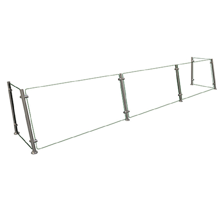 The Hatco EP15-120 Flav-R-Shield EP15 Food Shield is a precision-engineered full-service pass-over unit, expertly designed to meet the high standards of the food service industry. Measuring 120 inches in width, 18 inches in depth, and 22 inches in height, this robust structure is comprised of heat-tempered glass throughout, ensuring both durability and safety. Its design includes 3/4-inch radius corners and polished edges, enhancing its aesthetic appeal while maintaining strength. The 1/4-inch thick glass front and side panels are supported by 1-inch outer diameter brushed 304 stainless steel posts, which provide stability and a modern look. Notably, the front posts are tilted back at an 80-degree angle, offering a unique ergonomic advantage. The Hatco EP15-120 is an NSF-certified component, signifying its adherence to rigorous public health and safety standards. Proudly made in the USA, this food shield is an ideal choice for establishments seeking reliable and elegant food protection solutions. Its three-bay configuration makes it versatile for various serving applications, making it suitable for restaurants, cafeterias, and catering services that require efficient and high-quality food display options.