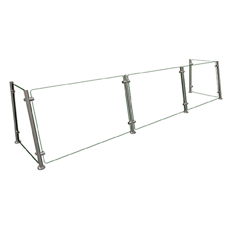 The Hatco EP15-96 Flav-R-Shield® EP15 Food Shield Full Service Pass-over 3 Bays 96"W x 18"D x 22"H is a versatile and robust solution designed for the food service industry. This food shield is engineered with heat-tempered glass throughout, ensuring durability and reliability in high-traffic environments. With 3/4" radius corners and polished edges, it provides a sleek and professional appearance while maintaining safety and functionality. The 1/4" thick glass front and side panels, coupled with front and back posts, offer substantial protection and accessibility for service staff. The 1" OD brushed 304 stainless steel posts are tilted back to an 80-degree angle, optimizing space and functionality. This NSF component underscores its compliance with stringent health and safety standards, making it a reliable choice for establishments that prioritize hygiene and quality. Proudly made in the USA, the Hatco EP15-96 Flav-R-Shield® EP15 Food Shield is ideal for restaurants, cafeterias, and catering services that need a dependable and aesthetically pleasing food shield solution. Its combination of aesthetic appeal, durability, and conformity with industry standards makes it a preferred choice for businesses aiming to enhance their service efficiency while maintaining high safety standards.