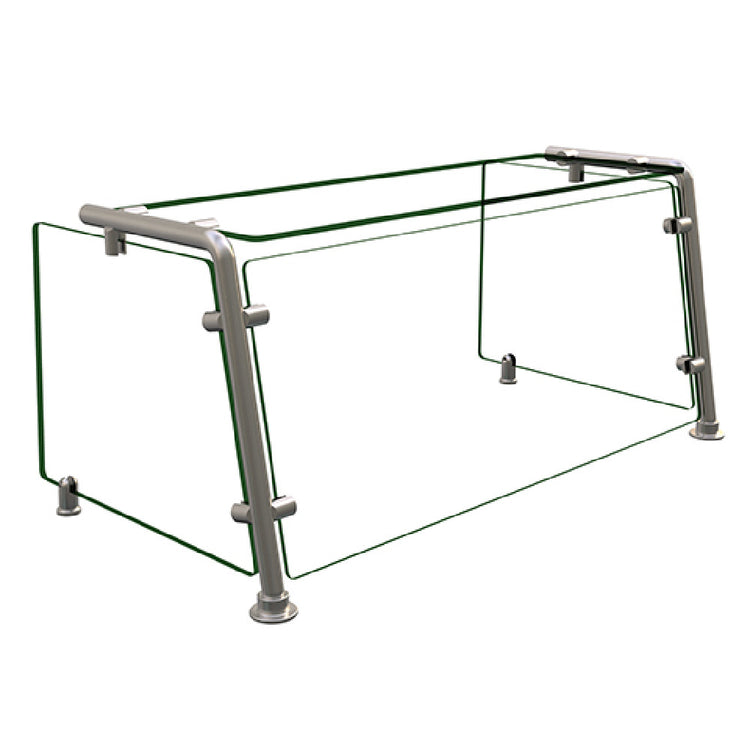 The Hatco EP21-03618 Flav-R-Shield® EP21 Food Shield is a full service pass-over unit, meticulously crafted with precision to support varied food service operations. This model features a single bay with dimensions of 36 inches in width, 18 inches in depth, and 18 inches in height, providing ample coverage for food presentation and safety. Constructed from 1/4-inch thick heat-tempered glass, the unit offers unparalleled durability and clarity, ensuring both food protection and visibility. Its design is enhanced with 3/4-inch radius corners and polished edges, adding a touch of elegance to its robust functionality. A glass top shelf accompanied by front and side panels further emphasizes the unit's comprehensive shielding capabilities. The structure is supported by 1-inch OD brushed 304 stainless steel posts, known for their strength and corrosion resistance, with the front posts uniquely tilted back at an 80-degree angle for stability and aesthetic appeal. Certified as an NSF component, this food shield meets high standards for public health and safety, and its construction proudly signifies American manufacturing excellence. Suitable for restaurants, hotels, and catering services, the Hatco EP21-03618 Flav-R-Shield® EP21 Food Shield combines superior material quality with innovative design to enhance service efficiency and customer satisfaction.