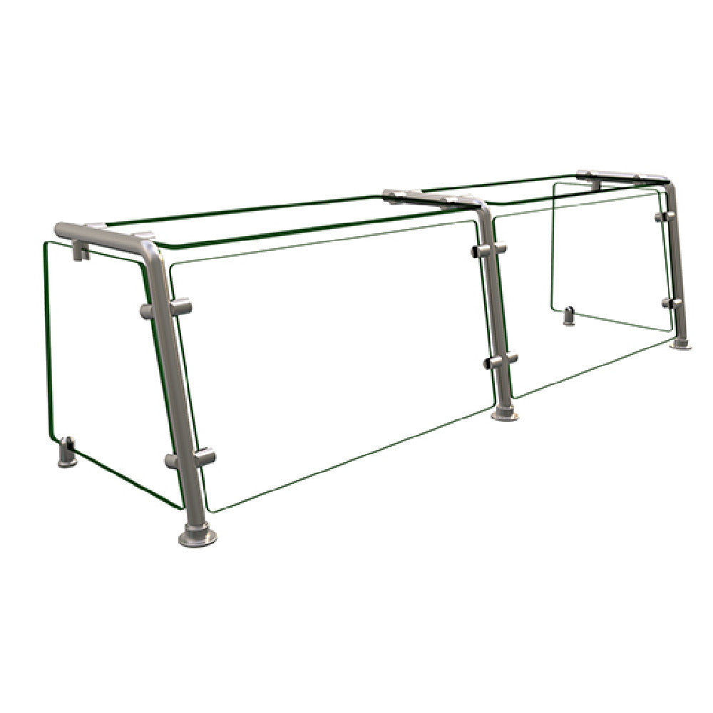 The Hatco EP21-06015 Flav-R-Shield® EP21 Food Shield is a distinctive full-service pass-over unit designed to enhance food safety and presentation in commercial food service environments. This model features a spacious design with dimensions of 60"W x 15"D x 18"H, providing ample coverage across its two bays. Its construction boasts 1/4" thick heat-tempered glass throughout, ensuring durability and resistance to thermal stress. The glass components, including a top shelf and front and side panels, are crafted with 3/4" radius corners and polished edges for a sleek, contemporary look. Supporting the structure are 1" OD brushed 304 stainless steel posts, with front posts strategically tilted back at an 80-degree angle for ergonomic accessibility. This food shield is NSF certified, emphasizing its adherence to strict public health standards. Proudly made in the USA, the Hatco EP21-06015 Flav-R-Shield® EP21 is an exemplary choice for restaurants, cafeterias, and buffets seeking to maintain high standards of hygiene and quality. Its robust construction and thoughtful design make it an invaluable addition to any food service operation, offering not only functionality but also an enhanced visual appeal that complements a wide range of culinary settings.