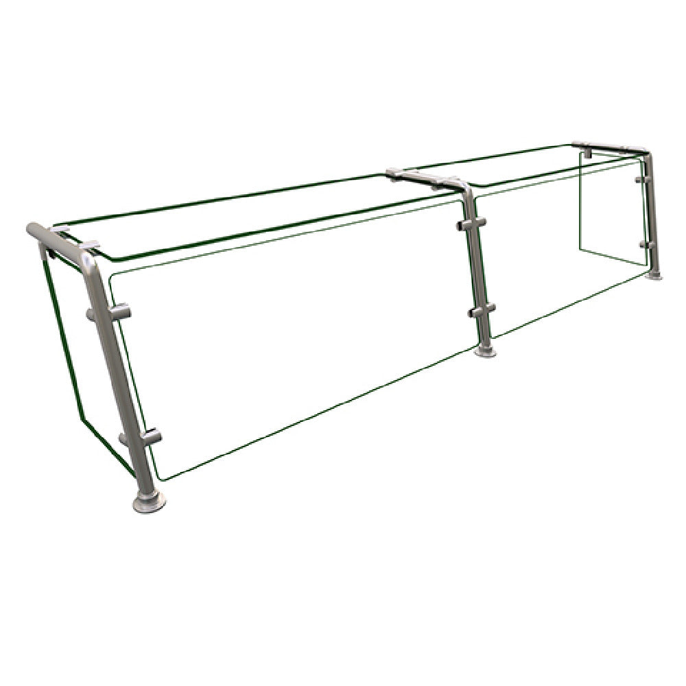 The Hatco EP21-07212 Flav-R-Shield® EP21 Food Shield is a meticulously engineered full-service pass-over unit, ideal for food service establishments requiring reliable and stylish food protection. This model features two bays, each measuring 72 inches in width, 12 inches in depth, and 18 inches in height, providing ample space for food display. Constructed from 1/4-inch thick heat-tempered glass, the food shield boasts 3/4-inch radius corners and polished edges, enhancing both safety and aesthetics. The inclusion of a glass top shelf, along with front and side panels, ensures comprehensive coverage and visibility. Supporting the structure are 1-inch OD brushed 304 stainless steel posts, with the front post thoughtfully tilted back at an 80-degree angle for improved accessibility. This unit is NSF certified, signifying its adherence to strict public health and safety standards. Proudly made in the USA, the Hatco EP21-07212 Flav-R-Shield® EP21 Food Shield is an exemplary choice for diverse market segments within the food industry, ranging from high-end restaurants to bustling catering operations, offering a combination of durability, functionality, and modern design.