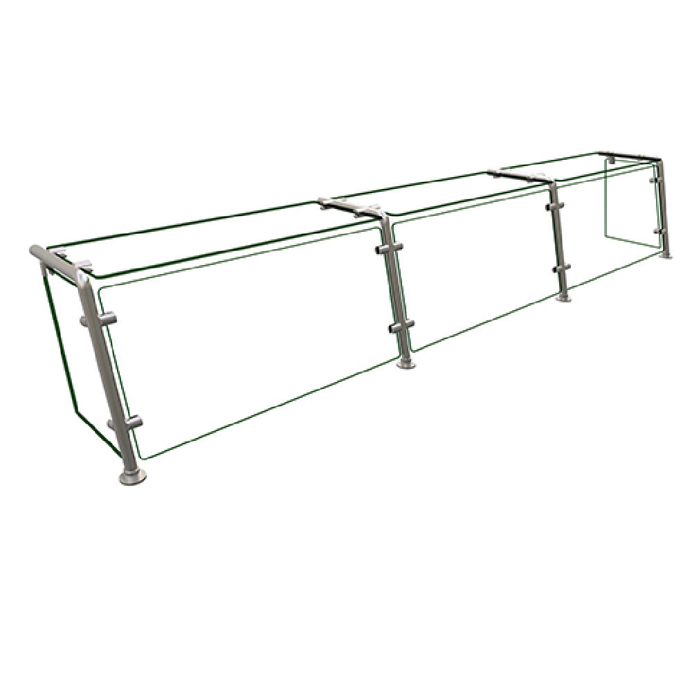 The Hatco EP21-09612 Flav-R-Shield® EP21 Food Shield is a full-service pass-over unit designed with precision and durability in mind, catering to various segments within the food service industry. This model boasts a construction of 1/4-inch thick heat-tempered glass, ensuring both strength and safety, with 3/4-inch radius corners and polished edges for a sleek, professional appearance. The food shield features a glass top shelf, complemented by front and side panels, providing comprehensive protection for displayed food items. Its dimensions of 96 inches in width, 12 inches in depth, and 18 inches in height make it a substantial addition to any food service operation, offering ample space across its three bays. Supported by 1-inch OD brushed 304 stainless steel posts, it includes front posts tilted back to an 80-degree angle, enhancing stability and aesthetic appeal. This product meets NSF component standards, underscoring its compliance with public health and safety guidelines. Proudly made in the USA, the Hatco EP21-09612 Flav-R-Shield® EP21 Food Shield serves as an invaluable asset for establishments seeking reliable and high-quality food protection solutions, blending robust design with functional elegance to effectively meet the demands of the modern food service environment.