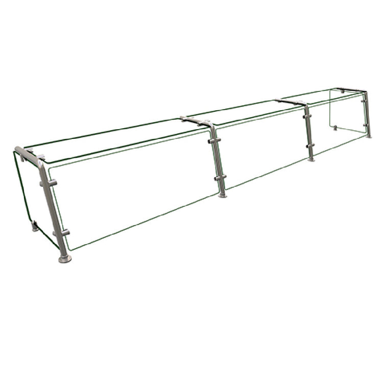 The Hatco EP21-10815 Flav-R-Shield® EP21 Food Shield is a full-service pass-over designed to meet the diverse needs of the food service industry. Measuring 108 inches in width, 15 inches in depth, and 18 inches in height, this product features a durable 1/4-inch thick heat-tempered glass construction throughout, making it a robust addition to any commercial kitchen. The glass design incorporates 3/4-inch radius corners and polished edges, ensuring both safety and aesthetic appeal. The unit’s glass top shelf, front, and side panels provide a transparent view, enhancing food presentation while ensuring hygiene. Supporting the structure are 1-inch OD brushed 304 stainless steel posts, with the front posts strategically tilted back at an 80-degree angle for added stability and ergonomic convenience. This product is NSF certified, underscoring its compliance with food safety standards, and is proudly manufactured in the USA. The Hatco EP21-10815 is an excellent choice for businesses seeking a dependable, high-quality food shield that combines functionality with design precision, catering to market segments including restaurants, catering services, and institutional dining facilities.