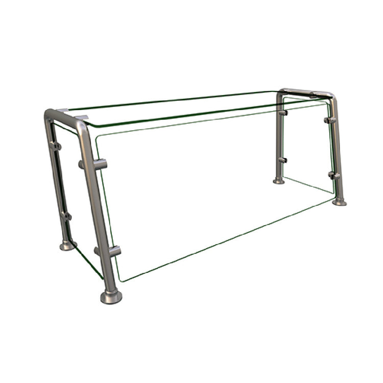The Hatco EP22-03612 Flav-R-Shield® EP22 Food Shield is a sophisticated, full-service pass-over unit designed for optimal food presentation and protection. This single-bay model measures 36 inches in width, 12 inches in depth, and 18 inches in height, providing a substantial space for food display. Constructed entirely from 1/4-inch thick, heat-tempered glass, it features polished edges and 3/4-inch radius corners for added safety and aesthetic appeal. The glass top shelf, along with front and side panels combined with a back post, ensures comprehensive coverage and visibility for food items. Supported by 1-inch outer diameter brushed 304 stainless steel posts, the structure is both durable and elegant. Notably, the front post is tilted back to an 80-degree angle, enhancing the ergonomic access to displayed items. The Hatco EP22-03612 is an NSF component, underscoring its compliance with rigorous sanitation standards, making it an exemplary choice for restaurants, catering services, and cafeteria environments where both presentation and hygiene are critical. Proudly manufactured in the USA, this food shield promises reliable performance and superior quality, offering a practical and stylish solution for food service professionals aiming to maintain food integrity and display appeal.