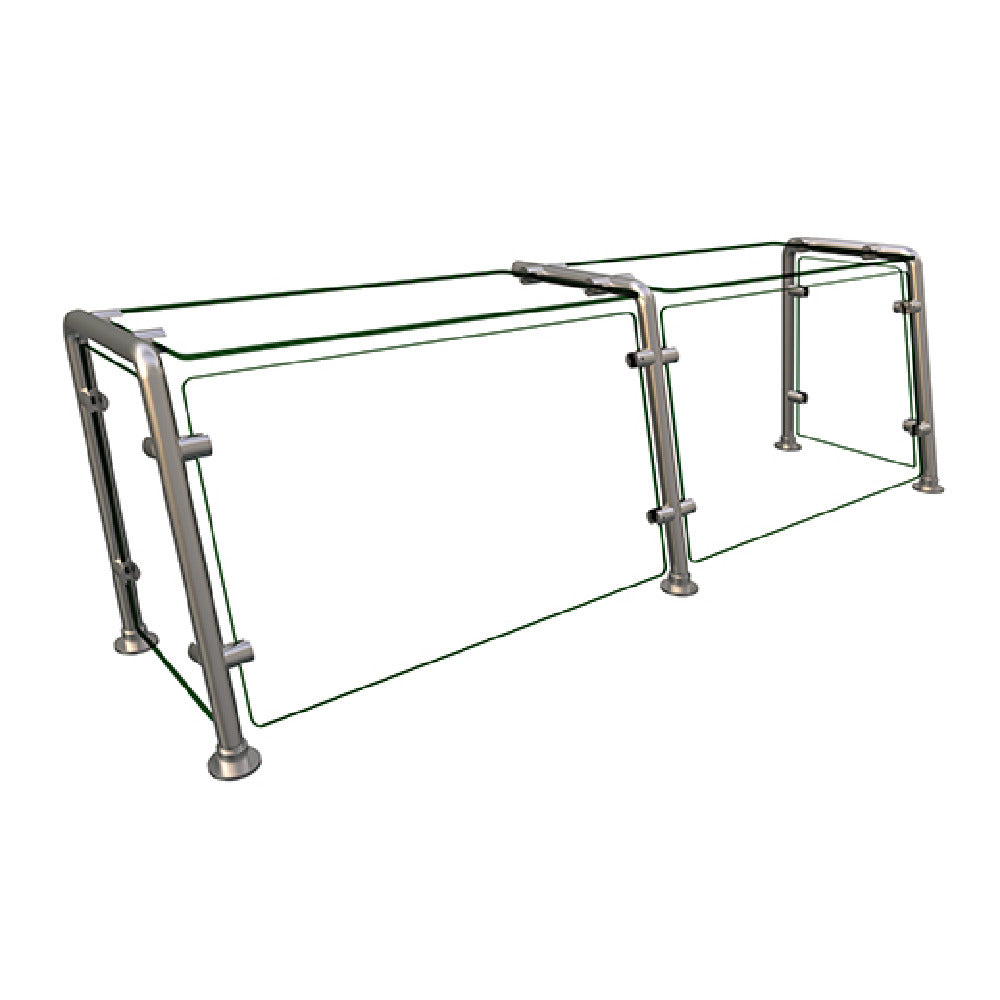 The Hatco EP22-04812 Flav-R-Shield® EP22 Food Shield - full service pass-over is engineered for optimal food service efficiency with its two-bay design measuring 48 inches wide by 12 inches deep by 18 inches high. Crafted entirely from 1/4-inch thick heat-tempered glass, it features 3/4-inch radius corners and polished edges, ensuring both durability and a sleek appearance. The glass top shelf, along with front and side panels supported by back posts, offer a stable yet transparent protective barrier for various food service environments. This food shield incorporates 1-inch OD brushed 304 stainless steel posts, with the front posts specifically angled back at an 80-degree tilt for enhanced stability and an ergonomic setup. As an NSF component, it adheres to strict public health standards, affirming its suitability for professional culinary settings. Proudly made in the USA, the Hatco EP22-04812 Flav-R-Shield® is a pivotal addition for establishments seeking reliable and stylish food protection solutions, catering to cafes, buffets, and restaurants that demand superior quality and elegance in their service equipment.