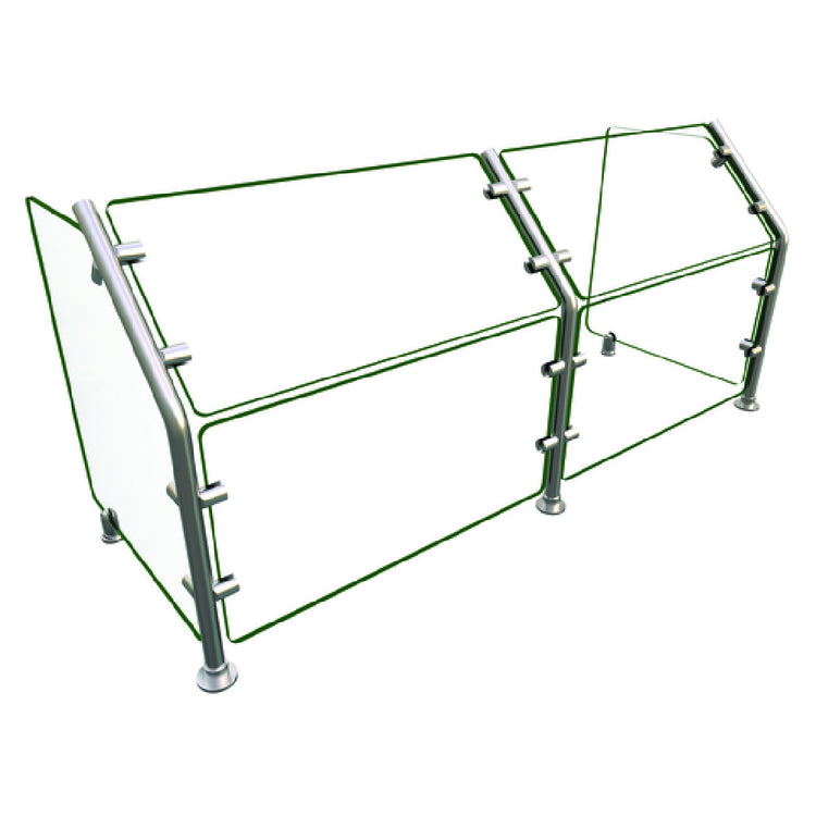 The Hatco EP36-48 Flav-R-Shield® EP36 Food Shield is a full-service solution designed with precision to meet the demanding needs of the food service industry. Measuring 48 inches in width, 18 inches in depth, and 22 inches in height, this food shield is crafted entirely from heat-tempered glass, ensuring durability and safety with its 3/4-inch radius corners and polished edges. The 1/4-inch thick glass front and side panels offer robust protection and visibility, making it ideal for service areas where presentation and hygiene are paramount. Supported by 1-inch OD brushed 304 stainless steel posts, this food shield not only provides structural integrity but also adds a sleek aesthetic to the service environment. Proudly made in the USA, the Hatco EP36-48 Flav-R-Shield® exemplifies quality craftsmanship and reliable performance. It is NSF component certified, which signifies its adherence to rigorous public health and safety standards. This makes it an excellent choice for restaurants, catering services, and any food service operation that requires a dependable solution for food display and protection. Its thoughtful design and meticulous construction make it a vital component in maintaining sanitary conditions and enhancing customer satisfaction in various commercial food service settings.