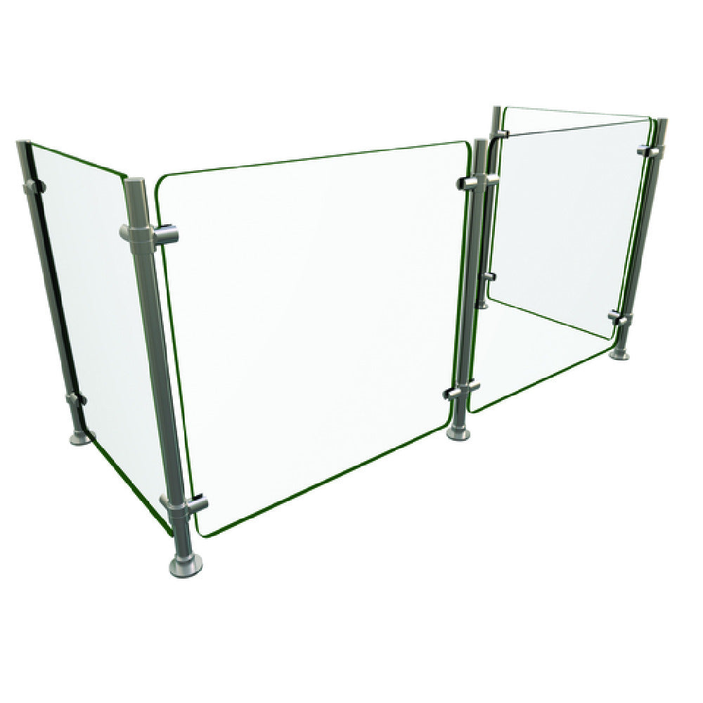 The Hatco EP5-RING-48 Flav-R-Shield® EP5-RING Food Shield Full Service Pass-over is an expertly crafted solution designed for food service environments requiring both functionality and aesthetic appeal. This food shield spans 48 inches in width, 18 inches in depth, and 25 inches in height, making it a versatile option for various service settings. Its heat-tempered glass construction ensures durability and safety, featuring 3/4-inch radius corners and polished edges for a sleek, modern appearance. The glass front and side panels are 1/4-inch thick, providing robust protection and visibility of the displayed food items. Supported by 1-inch OD brushed 304 stainless steel posts, this food shield is not only sturdy but also resistant to corrosion. The innovative adjustable ring brackets include locking points every 15 degrees, allowing for customizable setup to suit different presentation needs. Additionally, it has two 18-inch deep glass end panels that contribute to its comprehensive protection and aesthetic uniformity. Recognized as an NSF component, this product meets high standards for public health and safety, underscoring its reliability and quality for professional use. Proudly made in the USA, the Hatco EP5-RING-48 Flav-R-Shield® is a premium choice for establishments looking to enhance their food service capabilities.