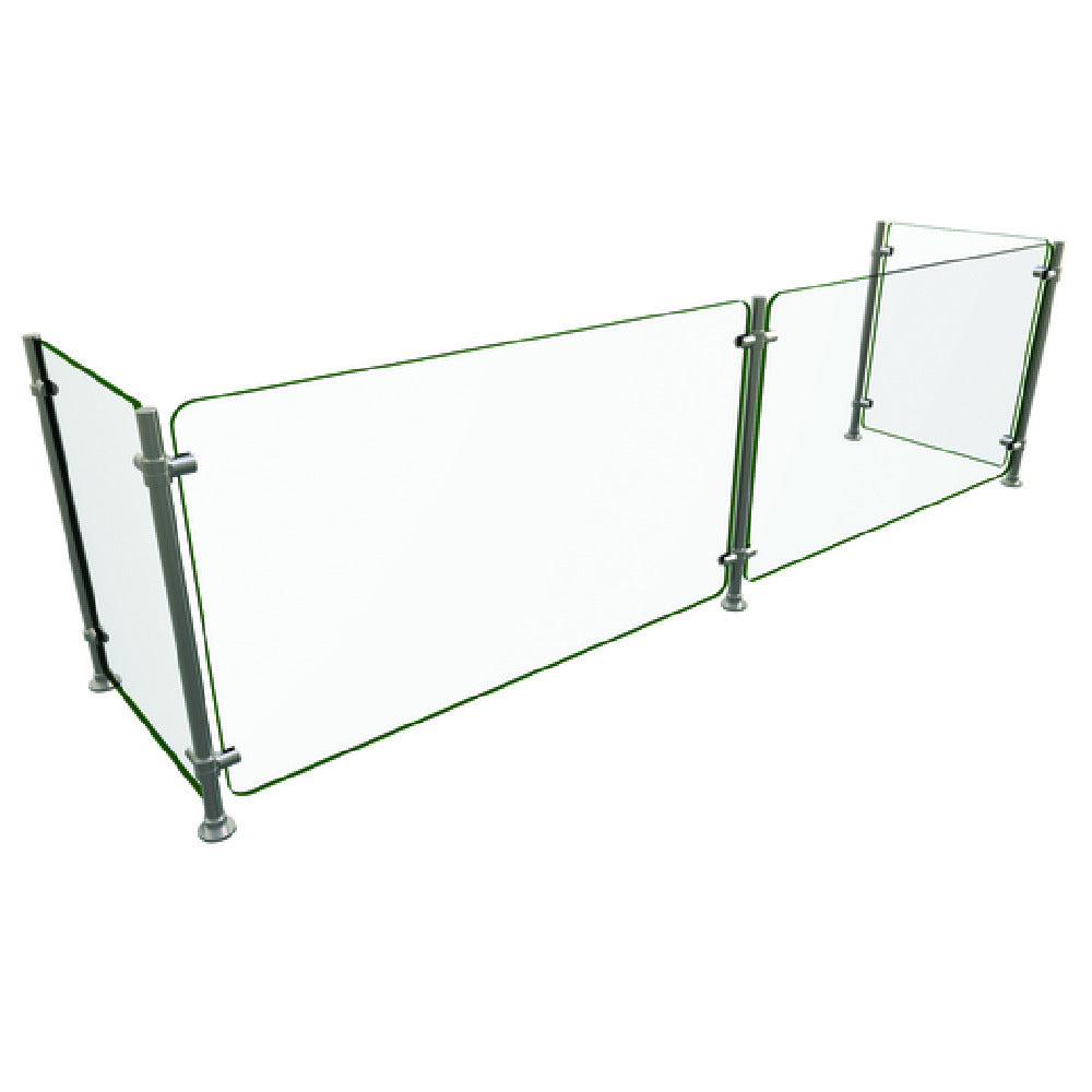 The Hatco EP5-RING-84 Flav-R-Shield® EP5-RING Food Shield Full Service Pass-over is a meticulously designed unit tailored for diverse food service environments. Engineered with heat-tempered glass construction throughout, it ensures durability and safety. The unit measures 84 inches in width, 18 inches in depth, and 25 inches in height, providing ample protection for food displays. Its design features 3/4-inch radius corners and polished edges, enhancing both safety and aesthetics. The front and side panels are composed of 1/4-inch thick glass, ensuring a robust barrier while maintaining visibility. Supported by 1-inch OD brushed 304 stainless steel posts, this food shield is both sturdy and visually appealing. The adjustable ring brackets, with locking points every 15 degrees, offer flexibility in setup and operation. To enhance its structural integrity, the unit includes two 18-inch deep glass end panels. Certified as an NSF component, this food shield adheres to stringent health and safety standards, making it a reliable choice for full-service establishments. Proudly made in the USA, the Hatco EP5-RING-84 Flav-R-Shield® EP5-RING Food Shield embodies quality and precision, catering to the specific needs of food service professionals looking for comprehensive protection and sophistication in their presentation.