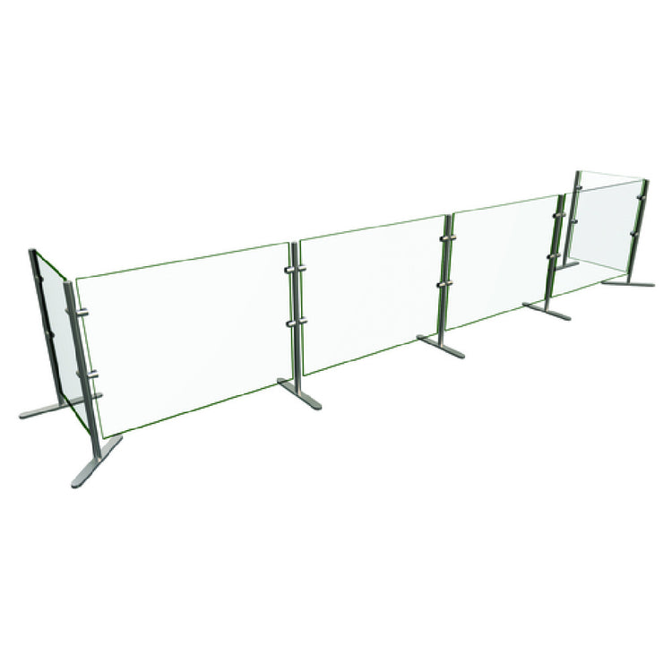 The Hatco EP6-132 Flav-R-Shield® EP6 Food Shield is a meticulously designed portable unit, engineered to meet the diverse needs of the food service industry. With dimensions of 132"W x 18"D x 27.5"H, this food shield provides substantial coverage across four bays, making it an ideal solution for buffets and serving stations. Constructed entirely from heat-tempered glass, it boasts square corners and polished edges, ensuring both durability and a sleek, professional appearance. The glass panels are 1/4" thick for enhanced strength and safety. Supporting this robust structure are 1" OD brushed 304 stainless steel posts, which add to its stability and aesthetic appeal. As an NSF component, the Hatco EP6-132 Flav-R-Shield® meets stringent health and safety standards, crucial for maintaining food safety in any professional kitchen. Proudly made in the USA, this product combines quality craftsmanship with versatile functionality, making it a valuable asset for restaurants, catering services, and any food service operation requiring reliable and stylish food shielding solutions.