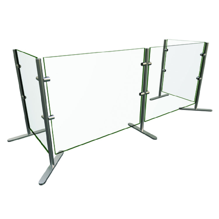 The Hatco EP6-60 Flav-R-Shield® EP6 Food Shield is a portable, versatile solution designed for various food service environments, measuring 60"W x 18"D x 27.5"H. Crafted entirely from heat-tempered glass with square corners and polished edges, this food shield offers enhanced durability and visibility, providing a clear view of the displayed food while ensuring safety and hygiene. The front and side panels are constructed from sturdy 1/4" thick glass, further emphasizing its robustness. Supporting the structure are 1" OD brushed 304 stainless steel posts, which not only provide stability but also add a touch of elegance with their polished finish. As an NSF component, the Hatco EP6-60 complies with strict public health and safety standards, ensuring that it meets the rigorous demands of professional food service environments. Made in the USA, this food shield embodies quality craftsmanship and reliability. With its innovative design and premium materials, the Hatco EP6-60 Flav-R-Shield® EP6 Food Shield is an invaluable asset for cafeterias, buffets, and any dining establishment that requires a portable, safe, and aesthetically pleasing food presentation solution.