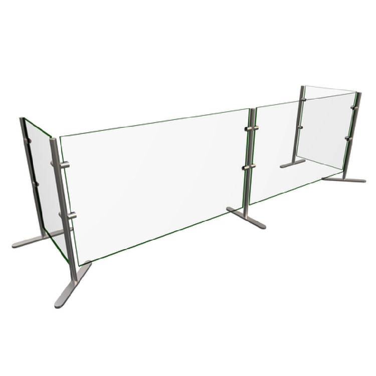 The Hatco EP6-84 Flav-R-Shield® EP6 Food Shield is a versatile and portable solution designed specifically for food service professionals seeking optimal presentation and protection of food. This unit features two bays with dimensions of 84 inches wide, 18 inches deep, and 27.5 inches high, making it a significant addition to any culinary setup. Constructed entirely with heat-tempered glass, it provides superior durability and safety, featuring square corners and polished edges for a sleek and professional appearance. The 1/4-inch thick glass panels on the front and sides ensure visibility while maintaining robust protective barriers. Support is provided by 1-inch outer diameter brushed 304 stainless steel posts, combining strength with aesthetic appeal. As an NSF component, this food shield meets rigorous health and safety standards, making it a reliable choice for various industry segments, including restaurants, catering services, and buffet setups. Proudly made in the USA, the Hatco EP6-84 Flav-R-Shield® exemplifies quality craftsmanship and attention to detail, offering an ideal blend of functionality and style for any food presentation environment.