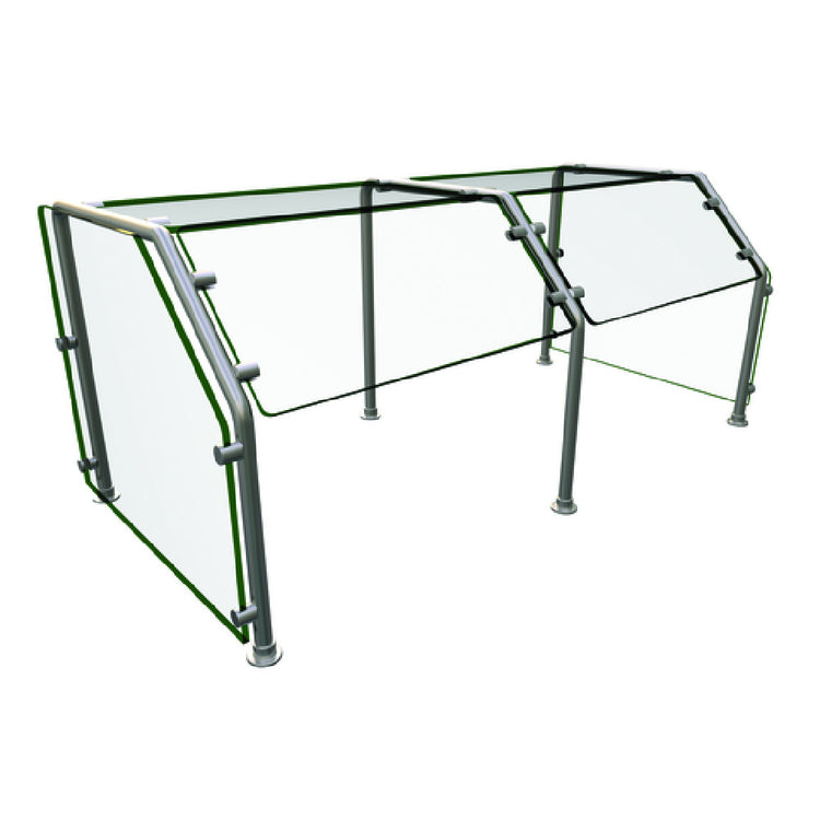 The Hatco ES29-48 Flav-R-Shield® ES31 Food Shield is a self-service unit engineered to enhance food presentation and safety across various food service settings. With dimensions of 48"W x 18"D x 22"H, it serves as a reliable solution for establishments that require efficient space utilization and clear visibility. The heat-tempered glass construction throughout, including the 3/8" thick glass top shelf, ensures durability and resistance to thermal stress. The design incorporates 3/4" radius corners and polished edges, adding to its sleek and modern aesthetic while minimizing safety hazards. This food shield features glass front and side panels, supported by robust 1" OD brushed 304 stainless steel posts, ensuring both stability and a professional appearance. The inclusion of back posts further supports the structure, making it suitable for high-traffic areas. As an NSF component, it meets rigorous public health standards, making it a dependable choice for industries that prioritize hygiene and food safety. The Hatco ES29-48 Flav-R-Shield® ES31 is proudly made in the USA, signifying high-quality craftsmanship. Its unique blend of technical precision and aesthetic appeal makes it an essential asset for cafeterias, buffets, and self-service dining areas looking to optimize their service efficiency and customer satisfaction.