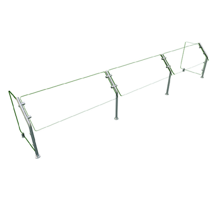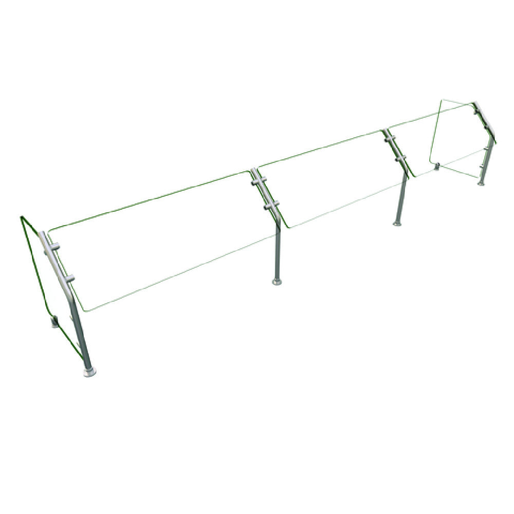 The Hatco ES31-120 Flav-R-Shield® ES31 Food Shield is a self-service unit with dimensions of 120"W x 18"D x 22"H, designed to enhance food presentation while ensuring hygiene and safety. Constructed entirely of heat-tempered glass, it features 3/4" radius corners and polished edges that provide a sleek and professional finish. The top shelf is made of 3/8" thick glass, while the front and side panels consist of 1/4" thick glass, offering durability and visibility from all angles. Supported by 1" OD brushed 304 stainless steel posts, this food shield ensures stability and resistance to environmental factors. As an NSF component, it meets rigorous public health and safety standards, essential for maintaining compliance in commercial food service environments. Proudly made in the USA, the Hatco ES31-120 Flav-R-Shield® ES31 Food Shield is ideal for various market segments, including buffets, cafeterias, and self-service stations, where both aesthetic appeal and sanitation are paramount. Its thoughtful design not only protects the food but also seamlessly integrates into any food service setup, enhancing both functionality and the overall dining experience.