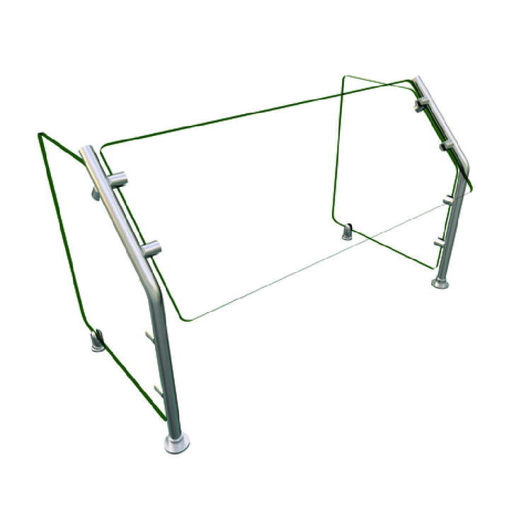 The Hatco ES31-36 Flav-R-Shield® ES31 Food Shield Self Service 36"W x 18"D x 22"H is a meticulously designed unit that combines functionality with durability, tailored for self-service environments in the food industry. This food shield is constructed entirely from heat-tempered glass, featuring 3/4" radius corners and polished edges for enhanced safety and a sleek aesthetic appeal. The top shelf is made from 3/8" thick glass, providing a robust surface for various service applications. The front and side panels, crafted from 1/4" thick glass, ensure optimal visibility and protection. Supporting the structure are 1" OD brushed 304 stainless steel posts, known for their resistance to corrosion and strength, making the unit a reliable choice for high-traffic areas. Certified as an NSF component, this food shield adheres to stringent public health and safety standards, ensuring it is suitable for use in professional food service environments. Proudly made in the USA, the Hatco ES31-36 Flav-R-Shield® provides a durable and aesthetically pleasing solution for any food service operation, from cafeterias to buffet lines, where quality and reliability are paramount.