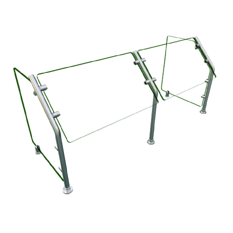 The Hatco ES31-48 Flav-R-Shield® ES31 Food Shield Self Service 48"W x 18"D x 22"H is a meticulously engineered protective fixture designed for self-service food environments. This food shield features heat-tempered glass construction throughout, ensuring durability and safety in high-traffic areas. The design includes 3/4" radius corners and polished edges that not only enhance aesthetic appeal but also contribute to user safety. The top shelf of the unit is constructed with 3/8" thick glass, providing a sturdy surface for food display. The front and side panels are made with 1/4" thick glass, offering clear visibility of the displayed items while maintaining a protective barrier. Supporting this structure are 1" OD brushed 304 stainless steel posts, known for their strength and resistance to corrosion, a critical requirement in foodservice settings. The Hatco ES31-48 is an NSF component, ensuring it meets strict public health and safety guidelines, a significant consideration for food safety compliance. Proudly made in the USA, this food shield is an ideal solution for a variety of market segments, including cafeterias, buffets, and self-service restaurants, where hygiene and presentation are paramount. Its robust construction and quality materials ensure it is a long-lasting investment for any food service operation.