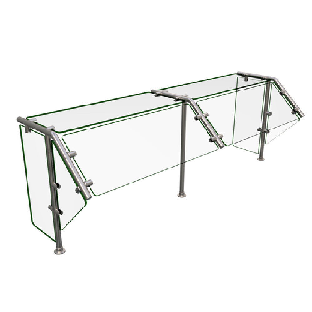 The Hatco ES40-60 Flav-R-Shield® ES40 Food Shield is a meticulously engineered self-service unit, ideal for establishments prioritizing hygiene and presentation. Featuring a robust construction of heat-tempered glass throughout, this food shield is designed with precision 3/4-inch radius corners and polished edges, ensuring both safety and elegance. The unit measures 60 inches in width, 20 inches in depth, and 24 inches in height, making it a versatile choice for various service environments. The glass components include a 1/4-inch thick top shelf, a glass front, and a set of end panels, providing comprehensive visibility and protection for displayed items. Supported by 1-inch OD brushed 304 stainless steel posts, this unit promises stability and longevity. As an NSF component, it adheres to industry standards for public health protection, underscoring its suitability for food service applications. Proudly made in the USA, the Hatco ES40-60 Flav-R-Shield® ES40 Food Shield offers a unique combination of safety, durability, and aesthetic appeal, making it a valuable asset for any food service operation seeking to enhance their self-service areas.
