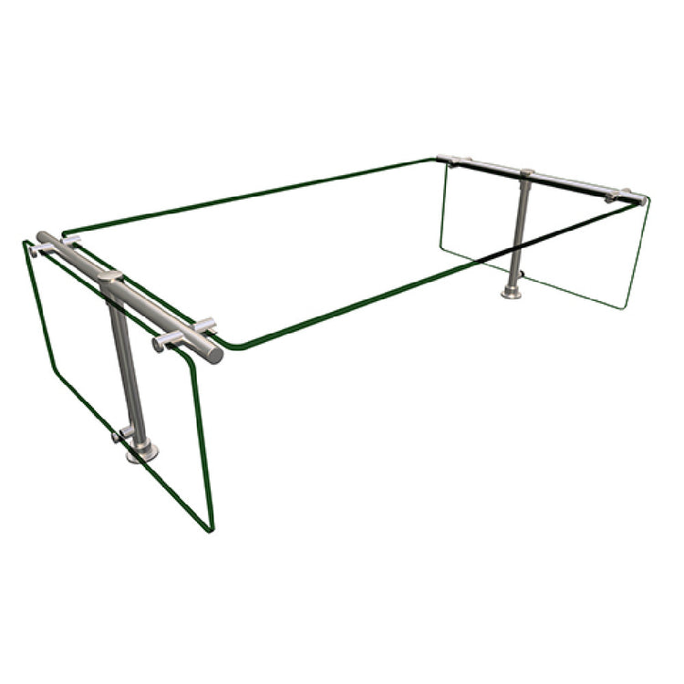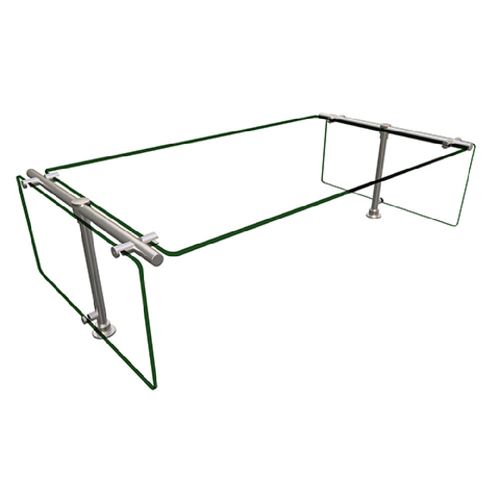 The Hatco ES53-36 Flav-R-Shield® ES53 Food Shield Stationary Double-sided Self Service is a meticulously designed unit, ideal for various food service settings that require robust self-service solutions. Constructed with heat-tempered glass throughout, this food shield ensures durability and safety in high-traffic environments. Its dimensions, 36 inches wide by 20 inches deep and adjustable up to 54 inches high, make it versatile for different spatial configurations and service needs. The glass top shelf and end panels are 3/8 inches thick, boasting 3/4 inch radius corners and polished edges for an elegant and safe finish. Supported by 1-inch OD brushed 304 stainless steel posts, this food shield combines strength with a sleek appearance. As an NSF component, it meets stringent public health standards, affirming its suitability for use in commercial food service operations. Proudly made in the USA, the Hatco ES53-36 Flav-R-Shield® stands out for its quality craftsmanship and reliable performance, serving as an indispensable element in cafeterias, buffets, and self-service dining facilities. Its double-sided design enhances accessibility for users, thereby optimizing service efficiency and customer satisfaction in any culinary environment.
