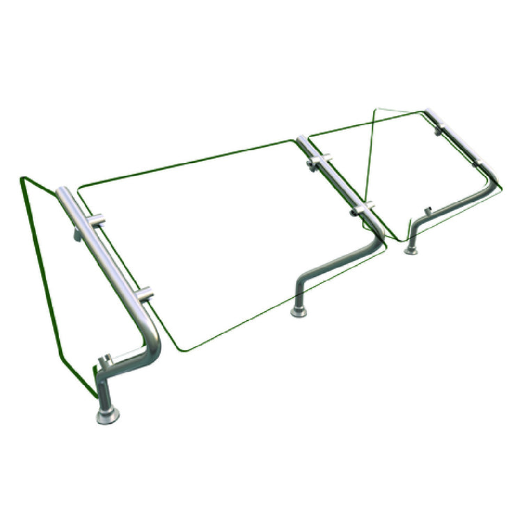 The Hatco ES67-48 Flav-R-Shield® ES67 Food Shield Self Service 48"W x 20"D x 22.56"H is a meticulously engineered solution for food display and protection in self-service settings. This model features a heat tempered glass construction throughout, with an impressive thickness of 1/4", ensuring durability and a clear view of the displayed items. Its design includes 3/4" radius corners and polished edges, enhancing both safety and aesthetics. The structure is supported by 1" OD brushed 304 stainless steel posts, ensuring robust stability and a sleek appearance. The glass front and side panels offer unobstructed visibility, making it suitable for environments where presentation and hygiene are paramount, such as buffets, cafeterias, and self-service restaurants. As an NSF component, it meets stringent public health and safety standards, further establishing its reliability and quality. Proudly made in the USA, the Hatco ES67-48 is a versatile and high-quality choice for various segments within the food service industry, providing a dependable food shield solution that effectively balances functionality and design.