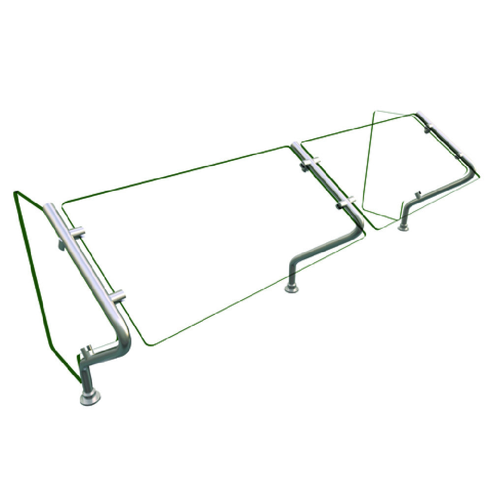 The Hatco ES67-60 Flav-R-Shield® ES67 Food Shield is an essential component for self-service stations, engineered with precision to meet the demands of the foodservice industry. Measuring 60 inches in width, 20 inches in depth, and standing 22.56 inches high, its compact yet spacious design is ideal for various service settings. The shield is constructed entirely of 1/4-inch thick heat-tempered glass, ensuring durability and safety. For enhanced aesthetics and safety, it features 3/4-inch radius corners and polished edges. The inclusion of glass front and side panels provides clear visibility while maintaining hygiene standards. The sturdy 1-inch outer diameter posts are crafted from brushed 304 stainless steel, offering both stability and a sleek appearance. Certified as an NSF component, this food shield aligns with stringent public health and safety standards, making it a reliable choice for foodservice establishments seeking quality and compliance. Proudly made in the USA, the Hatco ES67-60 Flav-R-Shield® is designed to provide long-lasting performance and protection, effectively catering to various market segments within the industry, such as restaurants, cafeterias, and buffet services, where maintaining food quality and safety is paramount.