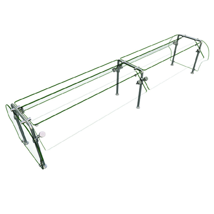 The Hatco ES92-108 Flav-R-Shield® ES92 Food Shield is a high-quality, double-sided self-service unit designed to enhance food display and safety in a variety of commercial settings. Measuring 108 inches in width, 38 inches in depth, and 23 inches in height, this food shield is engineered for optimal functionality and durability. Its construction features 3/8-inch thick heat-tempered glass throughout, ensuring robust protection and longevity, while the 3/4-inch radius corners and polished edges provide a sleek and professional appearance. The inclusion of a glass top shelf and adjustable front and side panels adds versatility and ease of use. Supported by 1-inch OD brushed 304 stainless steel posts, the structure promises stability and resistance to corrosion. Rated as an NSF component, the food shield meets stringent public health and safety standards, making it an ideal choice for establishments prioritizing hygiene and dependability. Proudly made in the USA, the Hatco ES92-108 Flav-R-Shield® ES92 Food Shield stands out as a versatile solution for self-service applications, combining superior materials and thoughtful design to cater to the needs of diverse markets within the food service industry.
