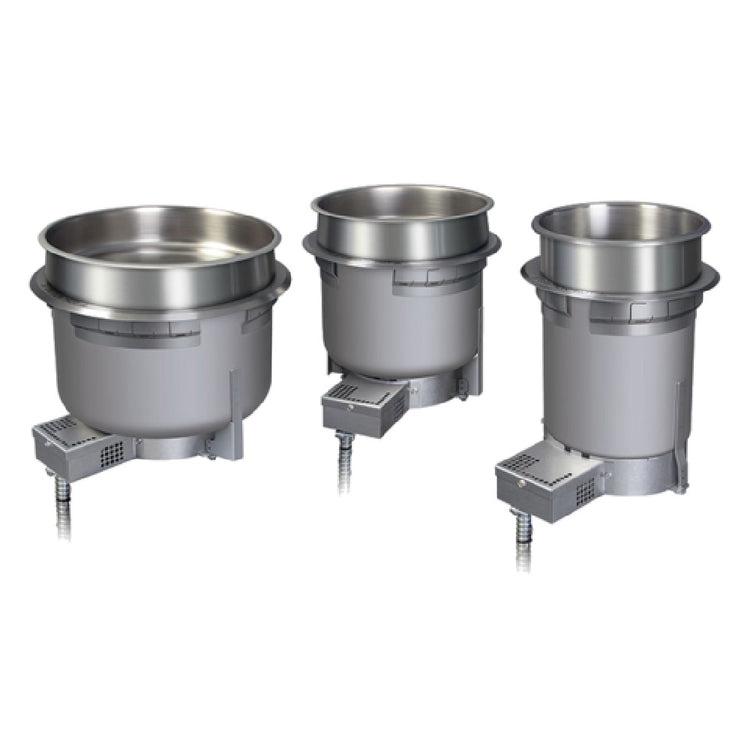 The Hatco HWBHRN-11QTD_208/60/1 Drop-In Heated Well is a specialized fabricator component designed for professional culinary environments requiring precise temperature control. This round, top-mounted unit supports an 11-quart capacity, making it an optimal choice for a range of food service applications where volume and efficiency are key. Its robust structure is crafted from stainless steel, ensuring durability and high performance in demanding settings. The heated well features an Infinite switch control system, providing users with versatile temperature management options to accommodate various food types. Additionally, a pilot light and leads are integrated into its design, enhancing user interaction and safety. A built-in drain is included, facilitating easy cleanup and maintenance, which is particularly advantageous in high-traffic kitchens. Operating on high wattage with a 208/60/1 electrical configuration, this component is engineered to deliver reliable and consistent heating. The Hatco HWBHRN-11QTD_208/60/1 is non-insulated, suggesting it is designed for applications where insulation is either unnecessary or provided by external means. Certified by cURus and proudly made in the USA, this heated well underscores its compliance with critical safety and quality standards, making it a valuable asset for those in the commercial food industry seeking efficiency and reliability in their equipment.