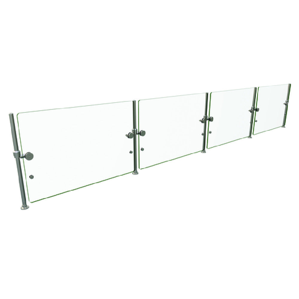 The Hatco ORBIT100-144 Flav-R-Shield® ORBIT100 Food Shield is a full service pass-over unit meticulously designed for optimal food service operations. This advanced food shield measures 144 inches in width, 2 inches in depth, and 18 inches in height, providing extensive coverage for a wide array of culinary settings. Constructed entirely from heat tempered glass, it features 3/4 inch radius corners and polished edges for enhanced safety and an aesthetic appeal. The ORBIT100-144 is equipped with an adjustable 3/8 inch thick front panel that includes a rotating face panel and additional circular openings, allowing for precise height adjustments to accommodate various service needs. The 1 inch OD brushed 304 stainless steel posts with mounting feet ensure stability and durability, making this food shield a reliable choice for high-traffic environments. It complies with NSF standards, underscoring its quality and safety in food service applications. Proudly made in the USA, the Hatco ORBIT100-144 Flav-R-Shield® is an exemplary choice for restaurant owners, catering services, and institutional dining facilities seeking superior performance and design efficiency in food protection solutions.