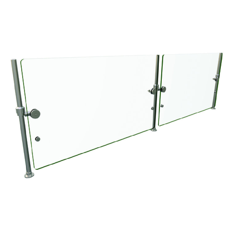 The Hatco ORBIT100-84 Flav-R-Shield® ORBIT100 Food Shield is a full-service pass-over model designed to meet the needs of diverse food service environments. This innovative unit features two bays, each measuring 84 inches in width, 2 inches in depth, and 18 inches in height, providing ample space for food presentation and protection. Constructed entirely from heat-tempered glass, it boasts 3/4-inch radius corners and polished edges, highlighting its sleek and modern design. The adjustable 3/8-inch thick front panel, complete with a rotating face panel and additional circular openings, ensures optimum height adjustment, allowing for versatile configuration in any setting. Supported by 1-inch OD brushed 304 stainless steel posts with sturdy mounting feet, this food shield promises durability and stability. As an NSF component, it meets the highest standards for sanitation and safety, making it a reliable choice for professional kitchens. Proudly made in the USA, the Hatco ORBIT100-84 Flav-R-Shield® ORBIT100 Food Shield represents a perfect blend of functionality, style, and compliance, catering to the needs of restaurateurs, caterers, and food service professionals seeking dependable food protection solutions. Its design and construction signify a commitment to quality and excellence in the industry.