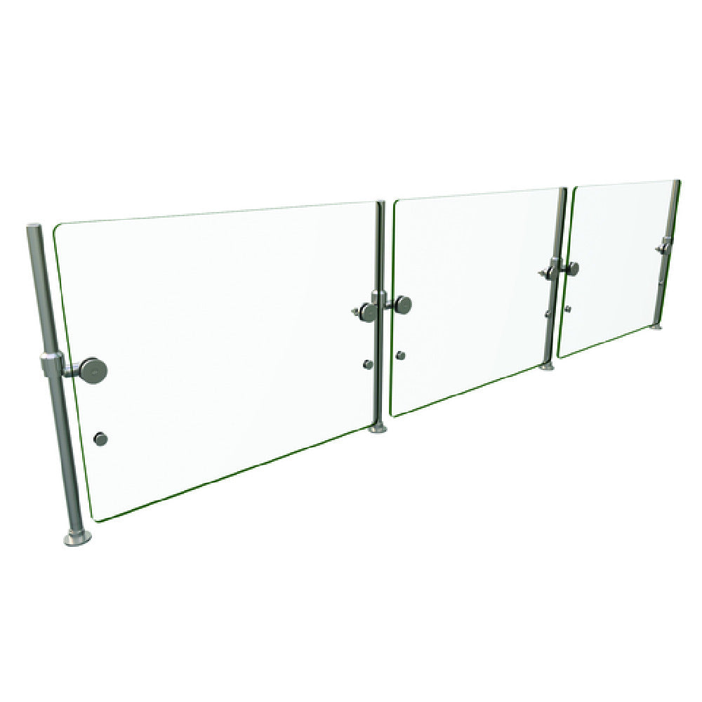 The Hatco ORBIT100-96 Flav-R-Shield® ORBIT100 Food Shield is a full-service pass-over unit specifically engineered for optimal food presentation and protection. With dimensions measuring 96 inches in width, 2 inches in depth, and 18 inches in height, it is designed with three bays to facilitate efficient service operations. This product features heat-tempered glass construction throughout, ensuring durability and safety, and is accentuated with 3/4-inch radius corners and polished edges for a sleek appearance. Notably, it includes an adjustable 3/8-inch thick front panel equipped with a rotating face panel and additional circular openings, providing versatile height adjustment capabilities to accommodate various service requirements. The food shield is supported by 1-inch outer diameter brushed 304 stainless steel posts, complete with mounting feet to ensure stability. As an NSF component, it meets rigorous public health and safety standards. Proudly made in the USA, the Hatco ORBIT100-96 is an ideal solution for a range of food service environments, offering a combination of visual appeal and robust functionality that caters to the distinct needs of different market segments within the industry. This product is particularly suited for establishments that prioritize both aesthetic and practical aspects in their service operations.