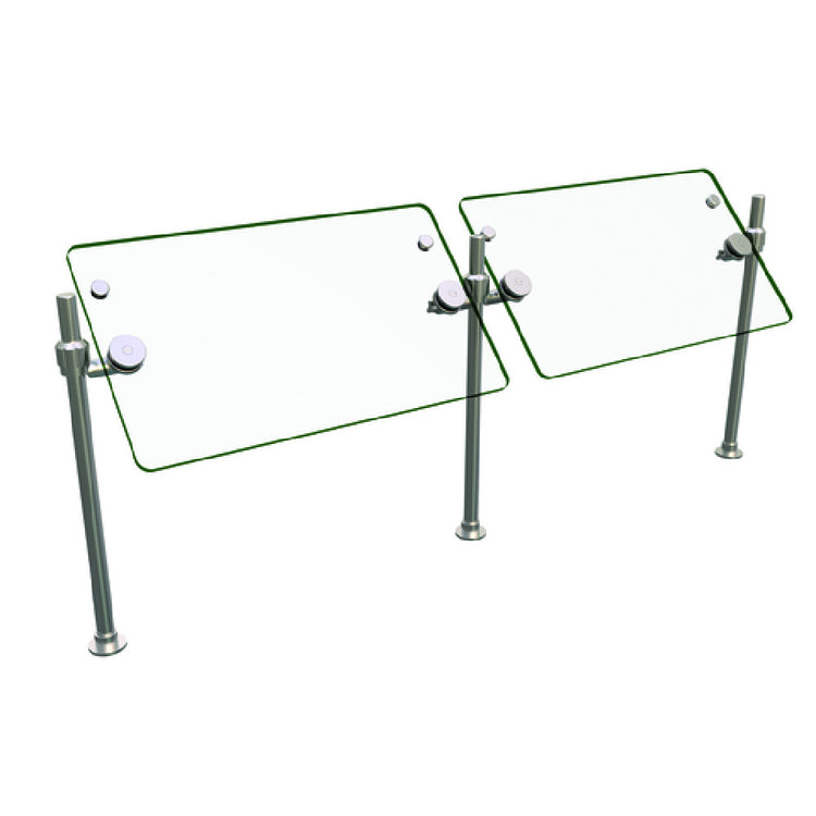 The Hatco ORBIT360-48 Flav-R-Shield® ORBIT360 Food Shield is a self-service unit meticulously designed for optimal food presentation and protection in commercial settings. It features two distinct bays, each measuring 48 inches in width, with an adjustable depth range of 2 to 14 inches and a height of 23 inches. This flexibility allows for tailored configurations to suit varying service requirements. Constructed entirely from heat-tempered glass, the unit boasts 3/4-inch radius corners and polished edges, ensuring both durability and a sleek aesthetic. The adjustable 3/8-inch thick front panel is enhanced with a rotating face panel and additional circular openings, facilitating precise height adjustments for diverse serving scenarios. Supporting the glass structure are 1-inch OD brushed 304 stainless steel posts with mounting feet, contributing to the unit's stability and ease of installation. As an NSF-certified component, the Hatco ORBIT360-48 ensures compliance with stringent health standards, making it a reliable choice for food service establishments. Proudly made in the USA, this food shield exemplifies quality engineering and is well-suited for restaurants, buffets, and other self-service environments seeking a blend of functionality and style.