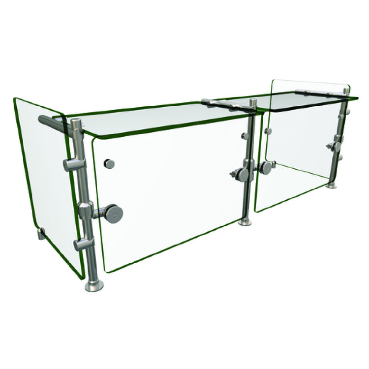 The Hatco ORBIT900-04824 Flav-R-Shield® ORBIT900 Food Shield is a robust full-service unit designed to optimize food display and safety across diverse food service environments. Constructed with 3/8" thick heat-tempered glass, it ensures durability and clarity, essential for showcasing culinary offerings effectively. The structure includes a glass top shelf, front and side panels, each precisely engineered with 3/4" radius corners and polished edges to enhance both safety and aesthetics. Its dimensions of 48" width by 24" depth accommodate a spacious display area, while the adjustable height of up to 23" provides flexibility to suit various presentation needs. The integration of 1" OD brushed 304 stainless steel posts underscores the unit's robust construction and stability. Recognized as an NSF component, it meets rigorous public health and safety standards, ensuring it is suitable for high-demand environments such as restaurants, hotels, and catering facilities. Proudly made in the USA, this food shield represents not just a commitment to quality but also to supporting domestic manufacturing. The Hatco ORBIT900-04824 is an ideal solution for establishments seeking a reliable, well-constructed food shield that prioritizes both function and form in the presentation and protection of food items.
