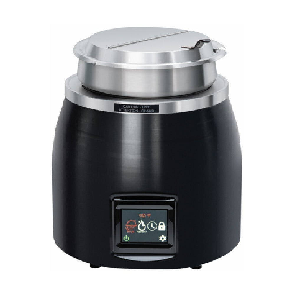 The Hatco SWC-7QT-QS@B (QUICK SHIP MODEL) Dry Soup Warmer is a highly functional countertop appliance designed for efficient soup warming and serving. With a capacity of 7 quarts, it is perfectly suited for small to medium-sized food service establishments. The unit operates at 425 watts and requires a 120v/60/1-ph electrical connection with 3.5 amps, ensuring powerful performance while maintaining energy efficiency. This model is equipped with a 6-foot cord & plug and a NEMA 5-15P plug type, offering versatility and ease of installation in various environments. Notably, the Hatco SWC-7QT-QS@B features six preset temperatures and allows for four customizable presets, providing flexibility and precision in maintaining soup at the desired serving temperature. Its bold black finish adds a touch of modernity and elegance, making it an attractive addition to any countertop. Certified by cULus and UL EPH, this dry soup warmer meets necessary safety and health standards, assuring users of its reliable performance and quality. The Hatco SWC-7QT-QS@B is an ideal choice for restaurants, cafeterias, and catering services that value efficiency, versatility, and safety in their food warming equipment.