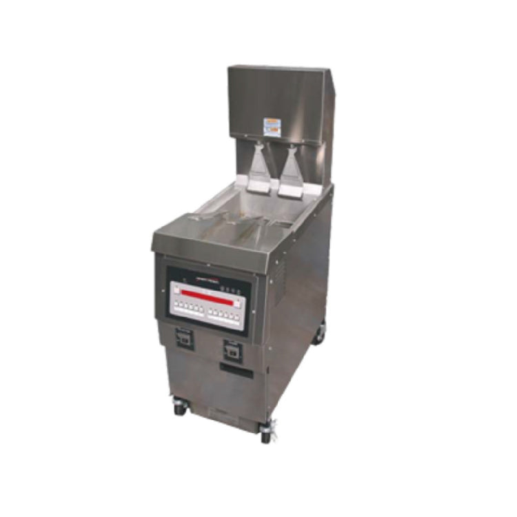 The Henny Penny OEA321.03 OEA-321 Electric Auto Lift Open Fryer is a high-performance kitchen appliance engineered for efficiency and precision in commercial frying applications. With a single well, it boasts a substantial 65-pound fat capacity and a 15-pound food capacity, making it ideal for high-volume cooking environments. The fryer features the COMPUTRON 8000 controls, providing advanced programmability and consistency in frying operations. Its stainless steel construction ensures durability and longevity, while the rectangular fry pot design supports optimal heat distribution and frying efficiency. An integrated filter system simplifies oil management by facilitating easy filtration, thus extending the life of the oil and maintaining the quality of fried foods. The fryer includes one basket support for convenient handling of food items. Additionally, it is equipped with four swivel casters, two of which are locking, allowing for easy maneuverability and stability within the kitchen space. The ENERGY STAR® certification highlights its energy-efficient performance, aligning with environmental and cost-saving initiatives. This fryer is particularly suitable for diverse foodservice operations, including restaurants, catering services, and fast-food outlets, where reliability, efficiency, and high capacity are paramount.