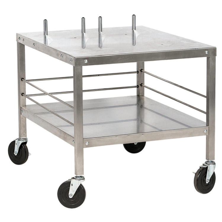 The Hobart TABLEHW-HL2012 Mixer Table is a meticulously designed piece of equipment, measuring 27"W x 32"D x 26"H, engineered to enhance both efficiency and organization in professional kitchens. This mixer table features a top shelf specifically drilled for the secure mounting of either an HL120 or HL200 mixer, ensuring stability during operation, which is crucial for maintaining consistent output in high-volume environments. The inclusion of 4 posts is a thoughtful design element, providing ample space for storing essential attachments, thus facilitating seamless workflow and accessibility. Additionally, the table is equipped with a lower shelf, offering extra storage capacity for other kitchen tools or ingredients, thereby optimizing space utilization. The mobility of the Hobart TABLEHW-HL2012 is enhanced by its (4) locking 5" diameter wheels, which allow for easy repositioning within the workspace while ensuring the unit remains securely in place during use. This mixer table is particularly valuable for culinary professionals seeking to maximize space, efficiency, and adaptability in their kitchens, making it an integral component for both large-scale food processing facilities and smaller artisanal bakeries where precision and organization are paramount.