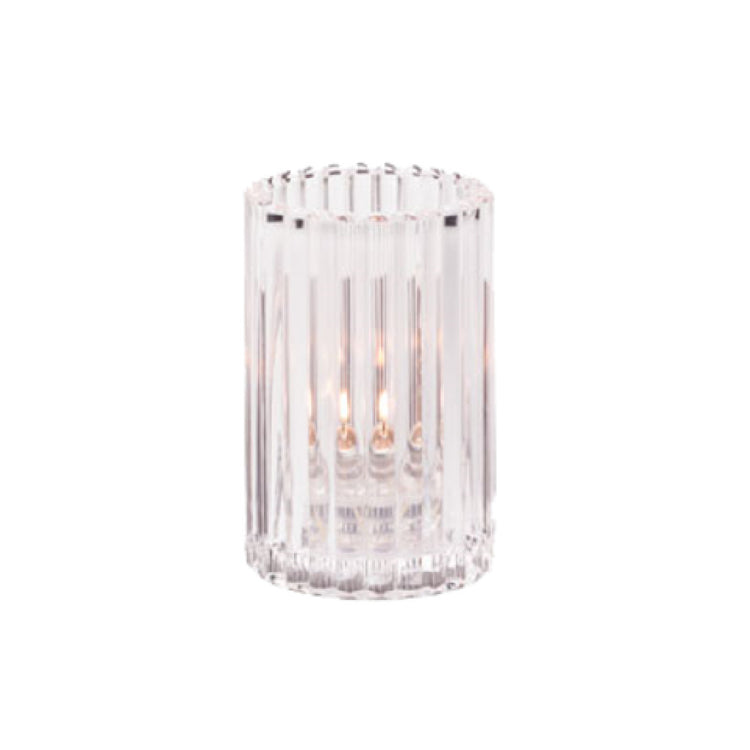 The Hollowick 1502C Rod Lamp is a precision-crafted lighting solution with dimensions of 2-7/8 inches in diameter and 4-5/8 inches in height, making it an ideal choice for various hospitality and dining settings. This vertical, cylinder-shaped lamp is specifically designed to accommodate Hollowick's HD12, HD17, or HD26 disposable fuel cells, providing flexibility and ease of use for users who require reliable lighting without the hassle of constant maintenance. Constructed from clear glass, the Hollowick 1502C Rod Lamp offers a sleek and modern aesthetic that can seamlessly integrate into a wide range of décor styles. Its transparent design ensures that the light emitted is both brilliant and consistent, enhancing the ambiance of any space it illuminates. This product is particularly valuable for restaurants, event planners, and caterers who seek a dependable and attractive lighting option that complements their settings. The use of disposable fuel cells simplifies the refueling process, making it an efficient choice for high-turnover environments where time and efficiency are crucial. The Hollowick 1502C Rod Lamp stands out in the industry for its combination of elegance, practicality, and adaptability, fulfilling the needs of professionals who prioritize both performance and visual appeal.