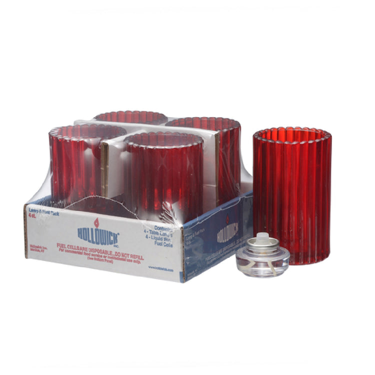 The Hollowick 1502R-4 Cash & Carry Rod Lamp, measuring 2-7/8 inches in diameter by 4-5/8 inches in height, is a meticulously crafted lighting solution designed to enhance various settings with its elegant vertical cylinder shape. This lamp is constructed from glass and features a rich ruby color, adding a touch of sophistication to any environment. Each pack contains four lamps, making it convenient for bulk purchasing and distribution. The Hollowick 1502R-4 model is equipped with HD12 Liquid Votive fuel cells, which provide a reliable and consistent source of illumination. This feature makes the lamp an ideal choice for hospitality venues, such as restaurants and hotels, that require ambient lighting solutions to create a warm, inviting atmosphere. The lamp's compact size and sleek design also make it suitable for use in intimate settings, including private dining areas and home decor. With its combination of aesthetic appeal and functional performance, the Hollowick 1502R-4 Cash & Carry Rod Lamp stands out as a versatile lighting option for various market segments within the industry, offering both style and practicality in its application.