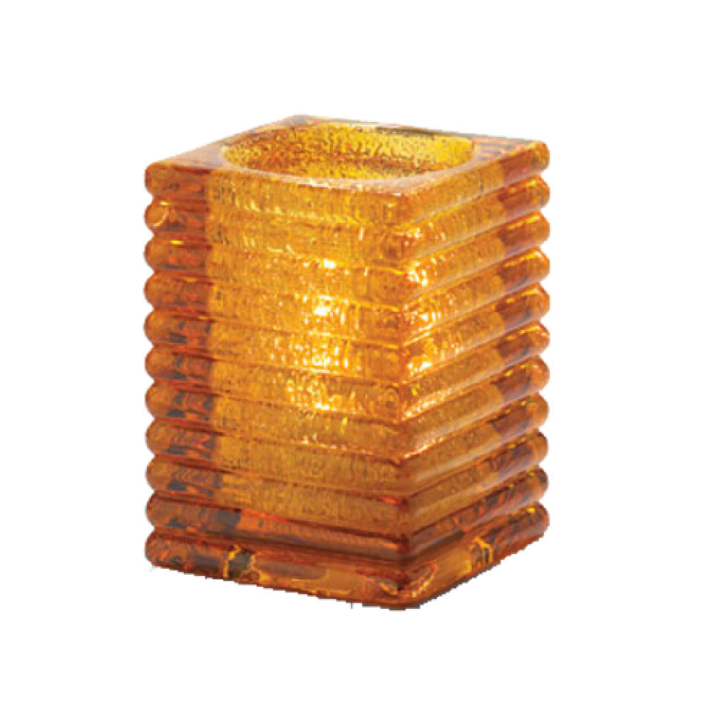 The Hollowick 1511AJ Rib Block Lamp 2-7/8"W X 4-1/8"H Horizontal is a sophisticated lighting solution designed for versatility and elegance in various settings. This lamp, crafted from high-quality glass, features a square, horizontal design measuring 2-7/8 inches in width and 4-1/8 inches in height. Its distinctive amber jewel finish adds a touch of warmth and charm, making it a visually appealing addition to any environment. Engineered to accommodate Hollowick's HD12, HD17, or HD26 disposable fuel cells, this rib block lamp provides flexibility in fuel options, catering to different operational preferences. The Hollowick 1511AJ is particularly suited for the hospitality industry, enhancing the ambiance in dining establishments, hotels, and event spaces. Its compact dimensions make it an excellent choice for tableside illumination, creating an inviting atmosphere while optimizing space. The lamp's compatibility with various fuel cells ensures prolonged and reliable performance, adapting to different usage requirements. With its blend of aesthetic appeal and functional design, the Hollowick 1511AJ Rib Block Lamp is an exceptional lighting fixture, strategically crafted to meet the nuanced demands of diverse market segments within the industry, offering both style and practicality in a single package.