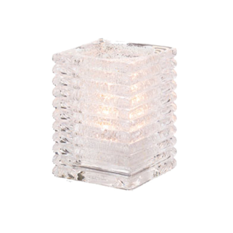 The Hollowick 1511CJ Rib Block Lamp is a square, horizontal lighting solution with dimensions of 2-7/8"W x 4-1/8"H, designed to enhance ambiance in a variety of environments. Crafted from clear jewel glass, this lamp provides a sophisticated aesthetic while maintaining durability and ease of maintenance. It is engineered to accommodate Hollowick's HD12, HD17, or HD26 disposable fuel cells, offering flexibility in fuel choices to suit diverse lighting needs across different markets, including restaurants, hotels, and event venues. Its compact design allows for strategic placement in various settings, making it a versatile addition to any tabletop or decor arrangement. The integration of the disposable fuel cells ensures an easy and clean operation, minimizing maintenance efforts and maximizing lighting efficiency. The Hollowick 1511CJ Rib Block Lamp is not only a functional lighting solution but also a design element that adds a touch of elegance with its ribbed glass construction. This unique combination of practicality and style makes it an ideal choice for industry professionals seeking to elevate their space with reliable and aesthetically pleasing lighting options. The lamp’s precise dimensions and compatibility with multiple fuel cells highlight its adaptability and ease of use in high-demand environments.