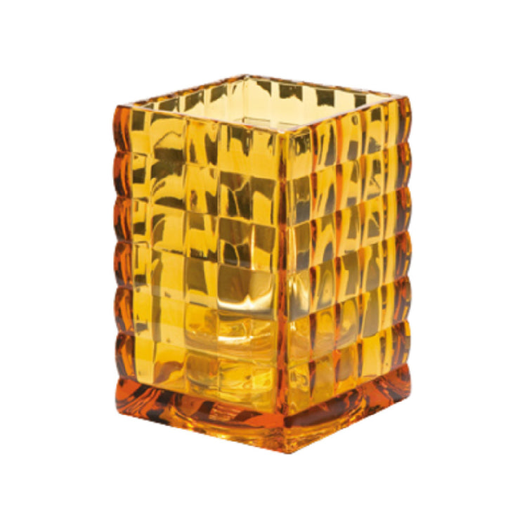 The Hollowick 1533A Optic Block™ Lamp is a meticulously designed lighting solution, with a square form factor measuring 2-5/8 inches in width and 3-3/4 inches in height. This lamp is crafted from high-quality glass and comes in an elegant amber color. It is specifically engineered to accommodate Hollowick's HD12, HD17, or HD26 disposable fuel cells, providing flexibility and convenience for various settings. This versatile product is ideal for use in the foodservice industry, enhancing the ambiance of restaurants, hotels, and event spaces with its sophisticated design. Its compact dimensions make it suitable for table settings, while its compatibility with different fuel cells offers operational efficiency. The Hollowick 1533A Optic Block™ Lamp not only provides a beautiful aesthetic but also serves as a practical lighting solution by seamlessly integrating with existing décor and lighting systems. Designed for reliability and ease of use, this lamp is a valuable addition to any establishment seeking to elevate their dining experience with ambient lighting. Its unique blend of form and function makes it a standout choice for professionals looking for both style and substance in their lighting options.
