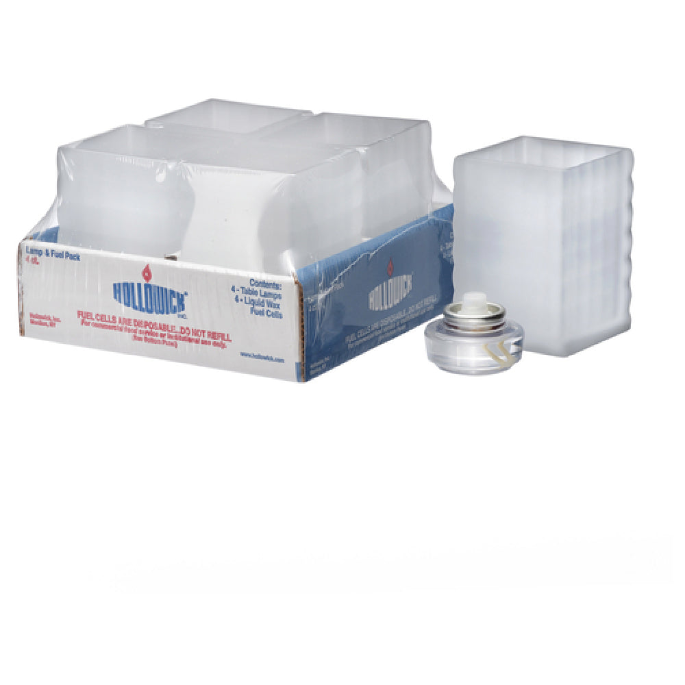 The Hollowick 1533SC-4 Cash & Carry Optic Block™ Lamp is a meticulously designed lighting solution, measuring 2-5/8 inches in width and 3-3/4 inches in height. This square lamp is crafted from high-quality satin crystal glass, presenting an elegant aesthetic suitable for various environments. Each package includes four lamps, equipped with HD12 Liquid Votive™ fuel cells for reliable and consistent illumination. The Optic Block™ Lamp is crafted to blend seamlessly into any setting, offering a sophisticated lighting option for both commercial and residential spaces. Its unique square design and premium glass construction provide a stylish alternative to traditional lighting solutions, enhancing ambiance with an understated elegance. The satin crystal finish adds a touch of luxury, making it an attractive choice for upscale venues or events requiring refined decor. This lamp is ideal for restaurants, hotels, or home use where ambient lighting adds to the overall experience. Its compact size allows it to fit effortlessly into various design themes and settings, ensuring versatile application across different market segments. The Hollowick 1533SC-4 lamp combines aesthetic appeal with practical functionality, catering to the diverse needs of the lighting industry.