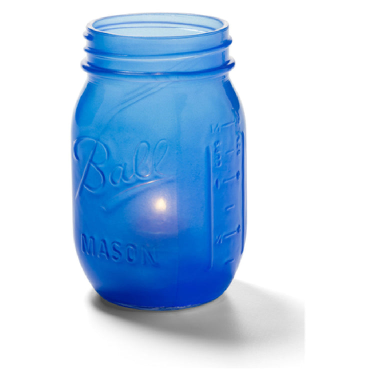 The Hollowick 1600SDBL Firefly™ Candle Lamp 5-1/4"H x 3" dia. Glass Canning Jar Only is an elegantly designed lighting solution that combines aesthetics with functionality. This product stands out with its dimensions of 5-1/4 inches in height and a 3-inch diameter, making it a compact yet striking addition to any setting. The glass canning jar is designed to accommodate the HD8 fuel cell, ensuring a consistent and long-lasting illumination. Its satin dark blue finish adds a touch of sophistication and can seamlessly blend into various decorative themes, from rustic to contemporary. This candle lamp is particularly valuable for restaurants, hotels, and event planners looking to create an inviting ambiance with minimal effort. Its practical design makes it easy to integrate into existing décor schemes while providing the unique benefit of versatility in ambiance settings. This product is specifically tailored for the hospitality industry, where atmosphere plays a critical role in customer experience, and offers a reliable, stylish option for enhancing dining and event environments. The technical precision in its design ensures that it meets the practical needs of commercial use while also offering an aesthetic appeal that elevates any space it adorns.