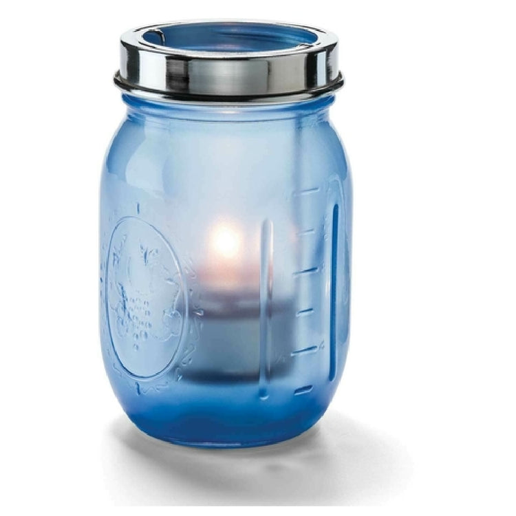 The Hollowick 1610SDBL Firefly™ Candle Lamp, measuring 5-1/4 inches in height and 3 inches in diameter, features a distinctive hanging tealight cradle™ design. This model is specifically crafted to accommodate Hollowick's HD8 fuel cells, making it a versatile option for various lighting settings. The use of a glass canning jar enhances its aesthetic appeal while ensuring durability and functionality. The satin dark blue finish adds a touch of elegance and sophistication, making it suitable for diverse environments, from intimate dining settings to larger event spaces. Its compact size and innovative design make it an ideal choice for those looking to incorporate ambient lighting without sacrificing space. The lamp's adaptability with Hollowick's HD8 fuel cells ensures a reliable and steady performance, ideal for hospitality venues or home use where consistent and safe lighting is paramount. The Firefly™ Candle Lamp's unique build and aesthetic appeal position it as a valuable asset for restaurants, catering events, and home décor, offering both practicality and style in one compact unit.