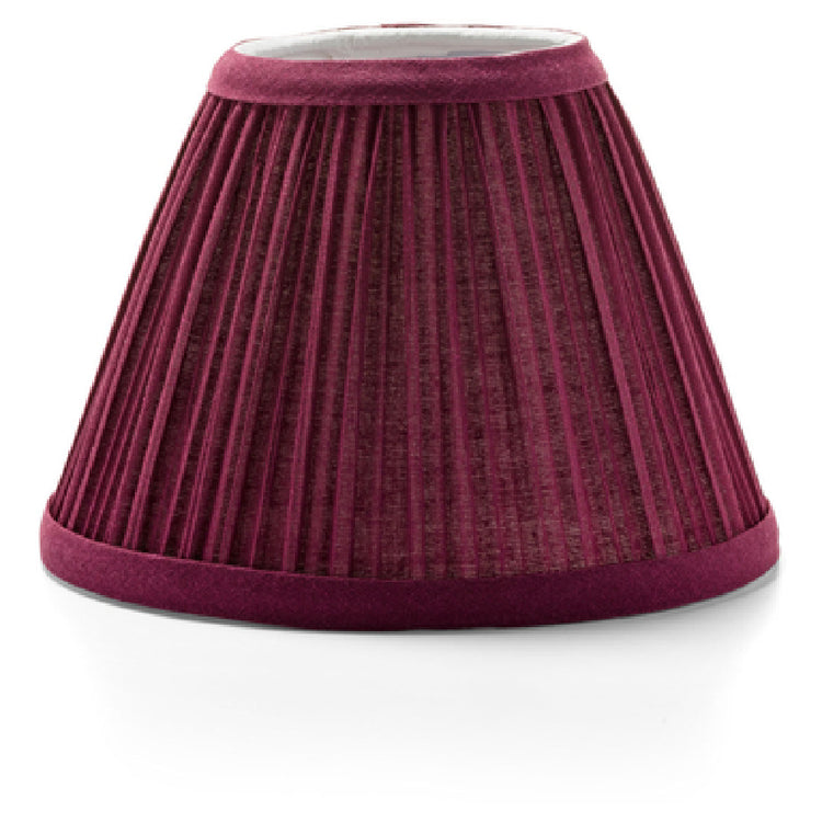 The Hollowick 296BG Fabric Lamp Shade 4-1/2"H x 6" Dia. Pleated is a meticulously designed accessory tailored for enhancing ambiance in hospitality and dining environments. With dimensions of 4-1/2 inches in height and a 6-inch diameter, this pleated lamp shade is crafted from fire retardant fabric and liner, emphasizing both safety and style. Its rich burgundy color adds a touch of elegance, making it a versatile choice for different settings, from upscale restaurants to cozy cafes. This product is specifically engineered to accommodate Hollowick's HD3622-HL disposable fuel cell, ensuring compatibility and ease of use with Hollowick's candlestick lamps. The fire retardant property is a critical feature for establishments prioritizing safety without compromising on aesthetic appeal. The Hollowick 296BG appeals to a diverse market segment, including restaurateurs looking to elevate the dining experience through sophisticated lighting solutions and event planners seeking reliable and attractive table accent pieces. By merging technical precision with timeless design, this lamp shade offers a unique value proposition for those seeking to enhance both functionality and visual appeal in their lighting arrangements.