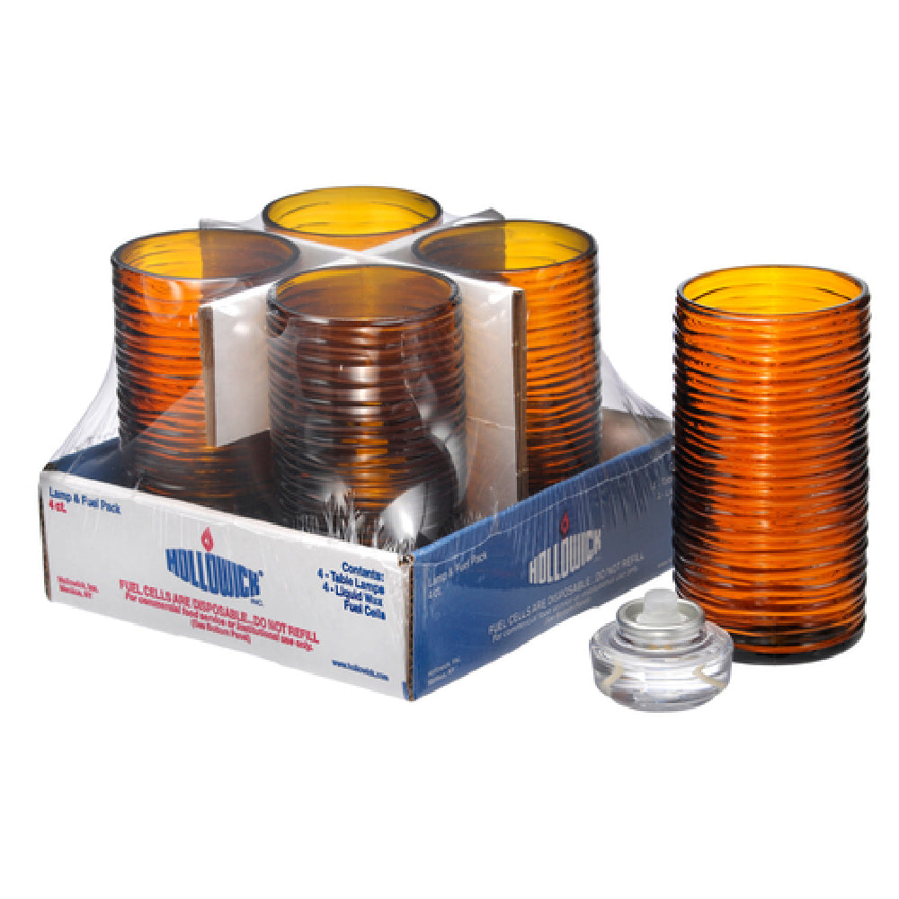 The Hollowick 42517DA-4 Cash & Carry Typhoon Candle Lamp Base is a meticulously crafted lighting solution, designed to enhance both ambiance and functionality in various settings. With dimensions of 2-5/8 inches in diameter and 5 inches in height, this mid-size lamp base is tailored to fit seamlessly into a range of environments, from intimate dining spaces to elegant events. The round form and spun glass design in a striking amber hue lend a sophisticated touch, making it a versatile choice for aesthetic enhancement. Each unit includes HD12 Liquid Votive™ fuel cells, providing reliable and consistent illumination. Packaged with four fuel cells per pack, this product ensures longevity and ease of use, appealing to both professional event planners and hospitality venues seeking to elevate their décor. The unique combination of size, material, and color makes the Hollowick 42517DA-4 an exceptional choice for those looking to integrate a distinctive lighting feature into their space. Its detailed design caters to a diverse market segment, emphasizing both style and practicality in a single, cohesive package.