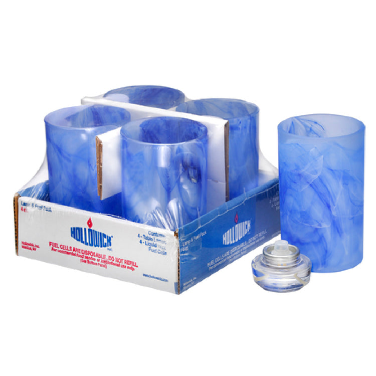 The Hollowick 44017DB-4 Cash & Carry Wysp™ Lamp is a meticulously crafted lighting solution, designed with a focus on style and functionality. Standing at 4-1/2 inches in height and measuring 2-7/8 inches in diameter, this cylinder-style lamp is engineered for versatility across various industry settings. Its glass construction ensures both durability and elegance, making it an excellent choice for creating ambient lighting in diverse environments. The lamp is equipped with HD12 Liquid Votive™ fuel cells, offering a reliable and efficient fuel source that enhances its operational efficiency. Available in a striking dark blue color, the Hollowick 44017DB-4 comes packaged with four lamps per pack, catering to bulk purchasing needs and ensuring convenience for businesses requiring multiple units. Ideal for restaurants, hotels, and event venues, this lamp provides an aesthetic appeal that complements its practical benefits. Its unique design and operational efficiency make it a standout choice for those looking to enhance their space with a touch of sophistication and reliability.