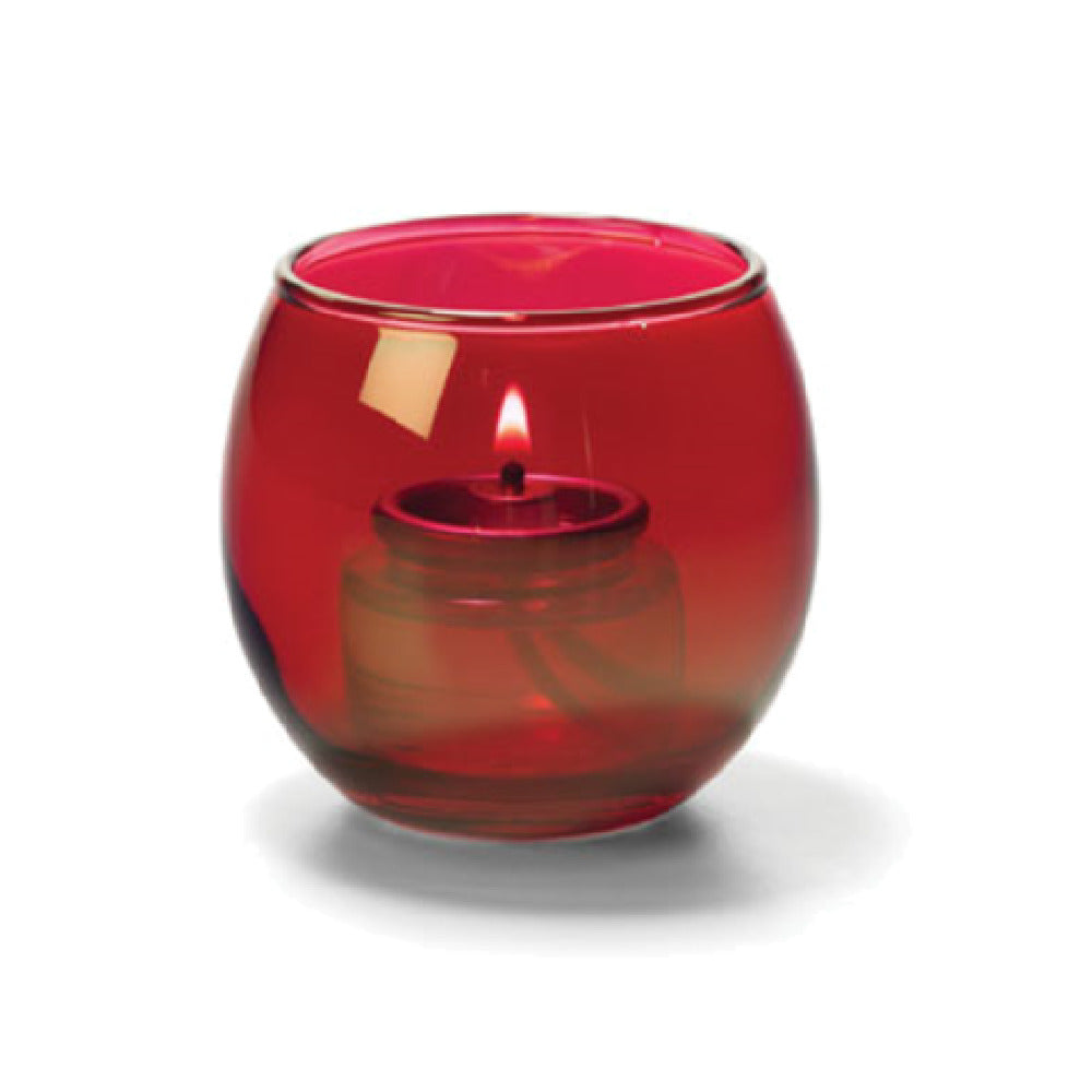 The Hollowick 5119R Tealight Lamp is a stylish and functional lighting solution, standing at 2-3/8 inches high with a diameter of 2-5/8 inches. Its bubble style design, crafted from high-quality glass, enhances any setting with a touch of elegance. This lamp is specifically designed to accommodate Hollowick's HD8 disposable fuel cell, ensuring a steady and reliable light source that is both convenient and efficient. The lamp's ruby lustre finish adds a sophisticated shimmer, making it a visually appealing choice for a variety of environments. Whether used to create a cozy ambiance in a restaurant or to add a charming accent to a special event, the Hollowick 5119R Tealight Lamp offers versatility and aesthetic appeal. Its compact size makes it suitable for intimate table settings or as part of a larger decorative arrangement. This tealight lamp is an excellent choice for hospitality venues looking to enhance their decor with a touch of warmth and color, while its compatibility with disposable fuel cells provides ease of use for staff. The Hollowick 5119R is an ideal selection for those seeking both functionality and style in their lighting fixtures.