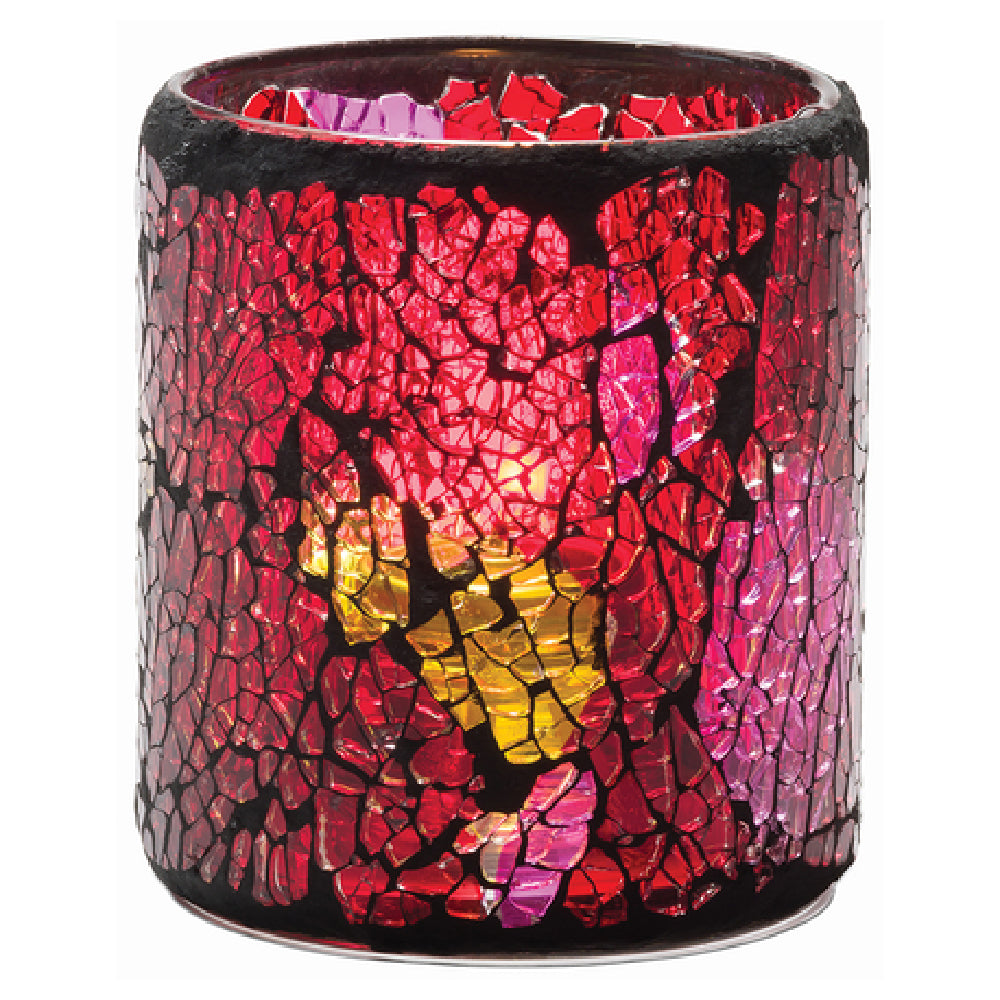 The Hollowick 6301RG Crackle™ Votive Lamp stands at 3-1/4 inches in height and has a diameter of 3 inches, crafted entirely from glass. This lamp is a distinctive addition to any setting, offering a unique blend of elegance and functionality. Its intricate crackle design and striking red and gold color scheme make it a standout piece for ambient lighting. Specifically designed to accommodate Hollowick's HD15, HD12, or HD8 fuel cells, this votive lamp offers versatility in its lighting options, catering to different preferences and needs. The product's compatibility with multiple fuel cell sizes enhances its adaptability across various market segments, from hospitality venues like restaurants and hotels seeking to elevate their dining ambiance to event planners looking for stylish and reliable lighting solutions. The durable glass construction ensures this votive lamp can withstand regular use while maintaining its aesthetic appeal. The Hollowick 6301RG Crackle™ Votive Lamp not only provides practical illumination but also serves as a decorative element, making it a valuable investment for any business aiming to enhance its visual environment. Its compact size allows for easy placement on tables or shelves, making it suitable for both intimate and expansive spaces.